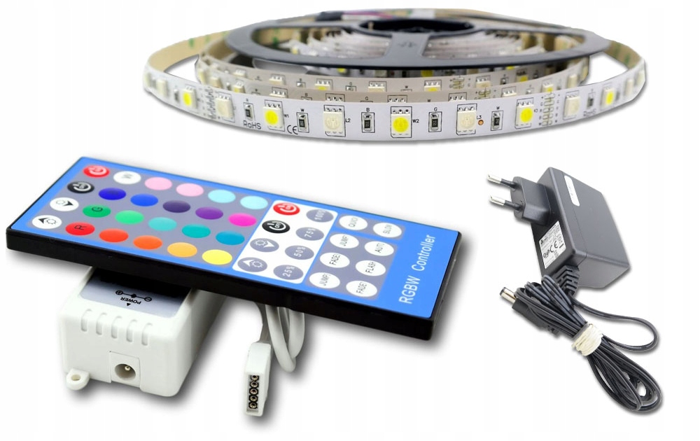 Набор светодиодов 5050 RGBW natural 5050 60LED/m SMD IP20 гибкий 12V DC + блок питания + пульт 2 м