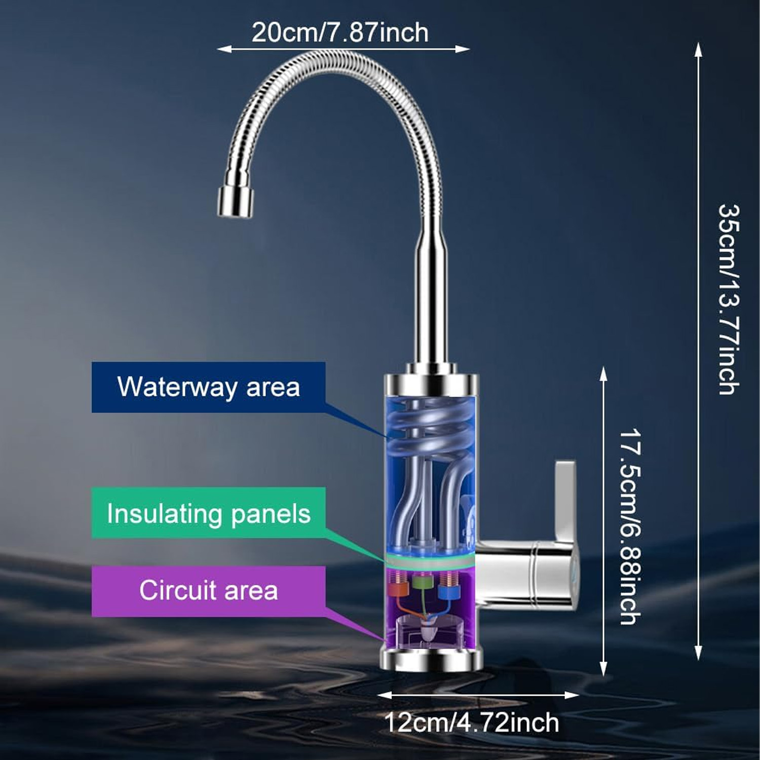 Этот электрический кран с водой с нагревателем из нержавеющей стали с мощностью 3000 в 3000 воде нагревает до 3 секунд, что устраняет необходимость долгое ожидание. Это не требует хранения или нагрева воды, что предотвращает перегрев воды. Температура воды может достигать 45-55 ° C зимой.