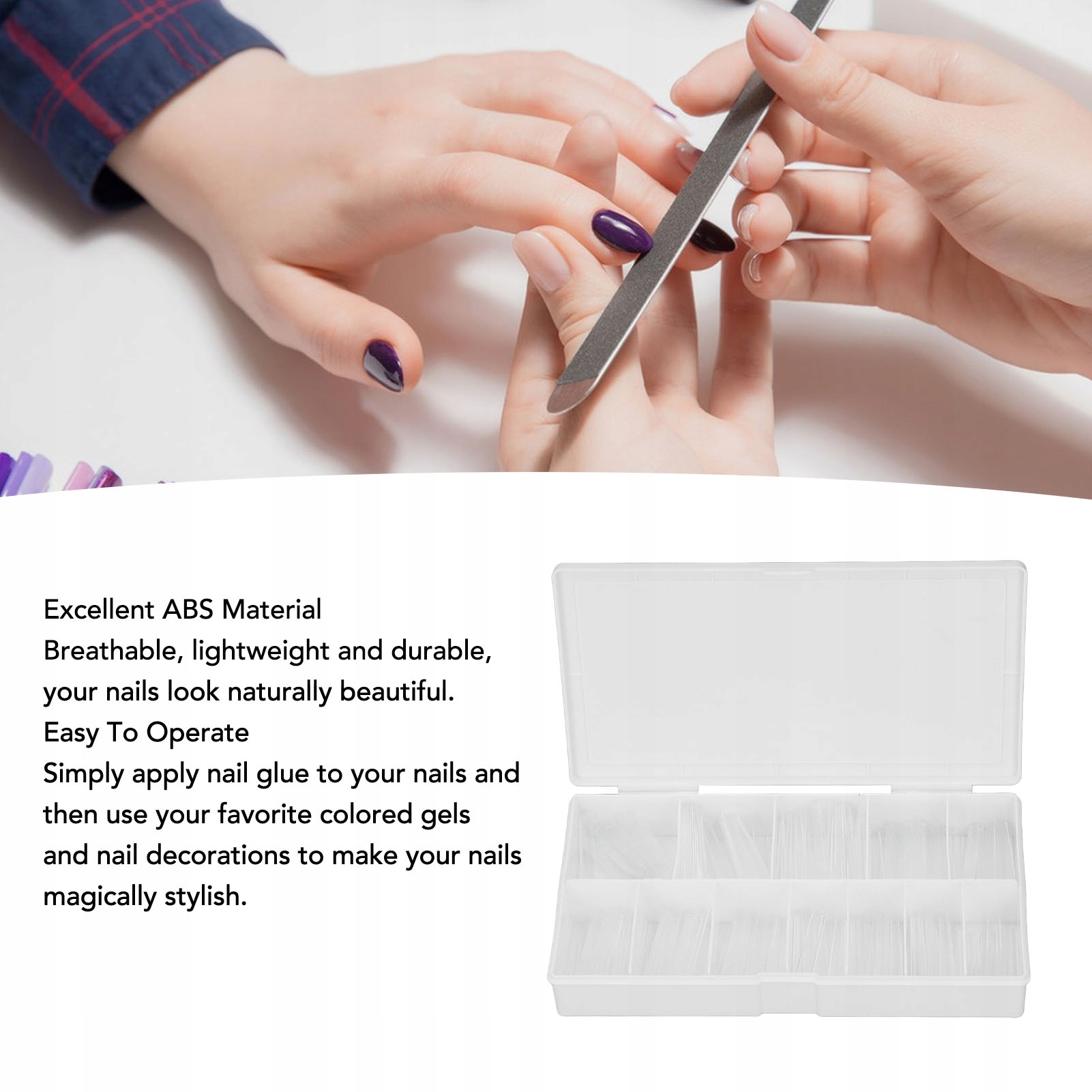 2. Простота в эксплуатации: с этим искусственным ногтем легко работать: просто нанесите гель на ногти, затем используйте свой любимый цвет геля и украшение для ногтей, сделайте свои ногти волшебными и модными.