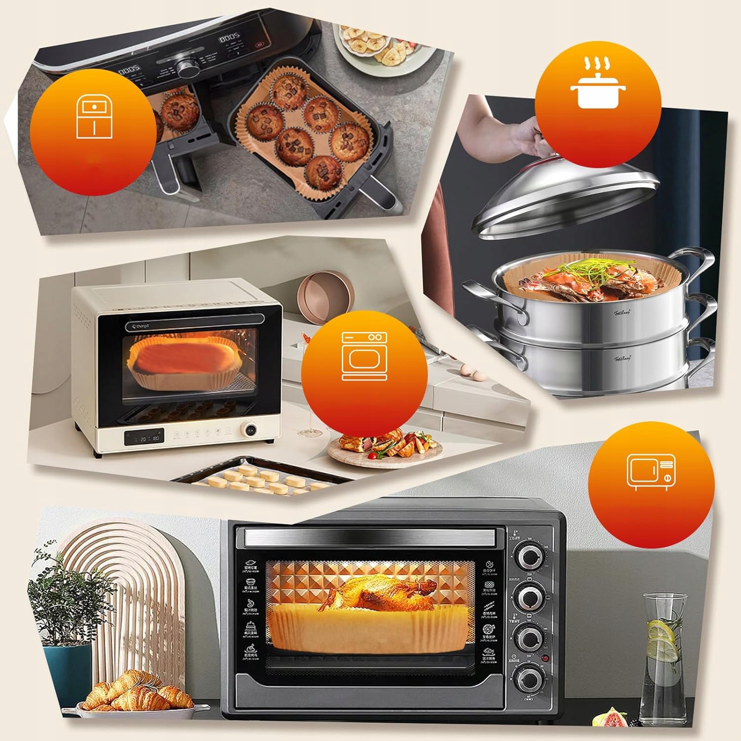 - Материал, из которого изготовлена одноразовая бумага для выпечки в воздухе, является биоразлагаемым и экологически чистым.