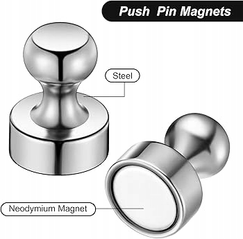 • Удобство и безопасность: Форма штифта позволяет легко захватывать и перемещать магнит, не царапая поверхность. Они идеально подходят для магнитных досок, холодильников или металлических шкафов.