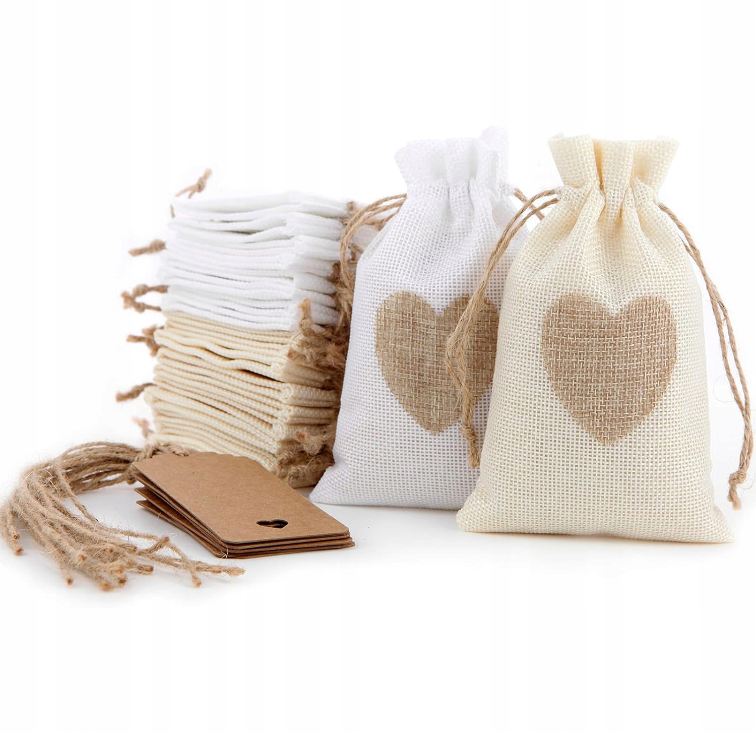 ✅【В комплект поставки】: Этот набор мини-сумок из джутового полотна на шнурке доступен в двух цветах. Один бежевый, один простой белый, по 15шт, размер каждого 10 х 15 см. В комплект также входят 30 подарочных ярлыков и 10 метров веревки. Легкий, удобный в хранении и переноске, идеально подходит для упаковки подарков-сюрпризов для особых случаев.