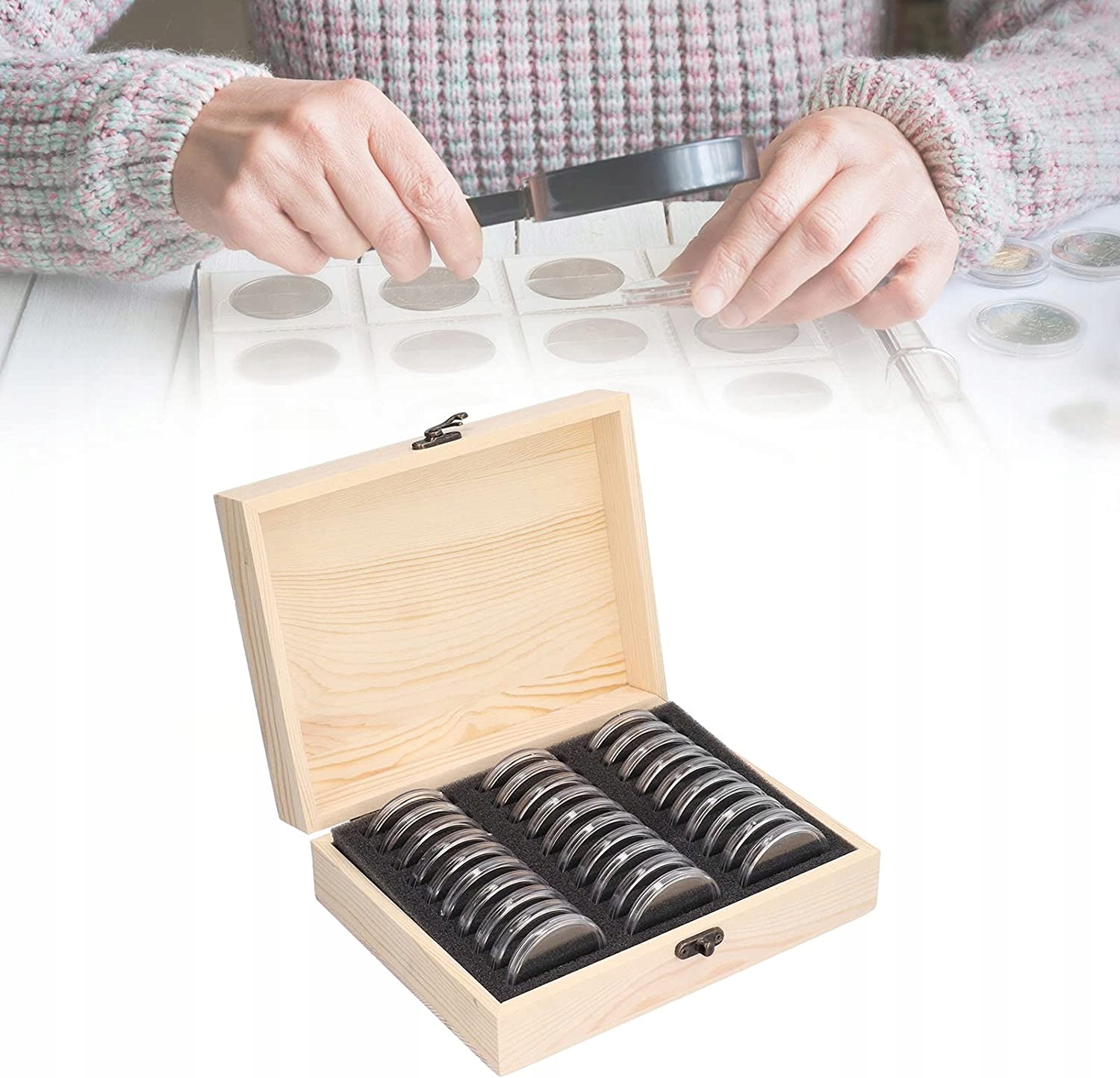 - 【Ящик для хранения монет】Размеры ящика для хранения составляют примерно 210 x 163 x 65 мм, он изготовлен из высококачественной сосновой древесины и вмещает 30 монет. кусочки пластиковых капсул для монет. Прозрачные монетные капсулы облегчают хранение, просмотр и обмен монет. Деревянный ящик для хранения монет практичен и долговечен, идеально подходит для защиты капсул для монет, организации и уборки.