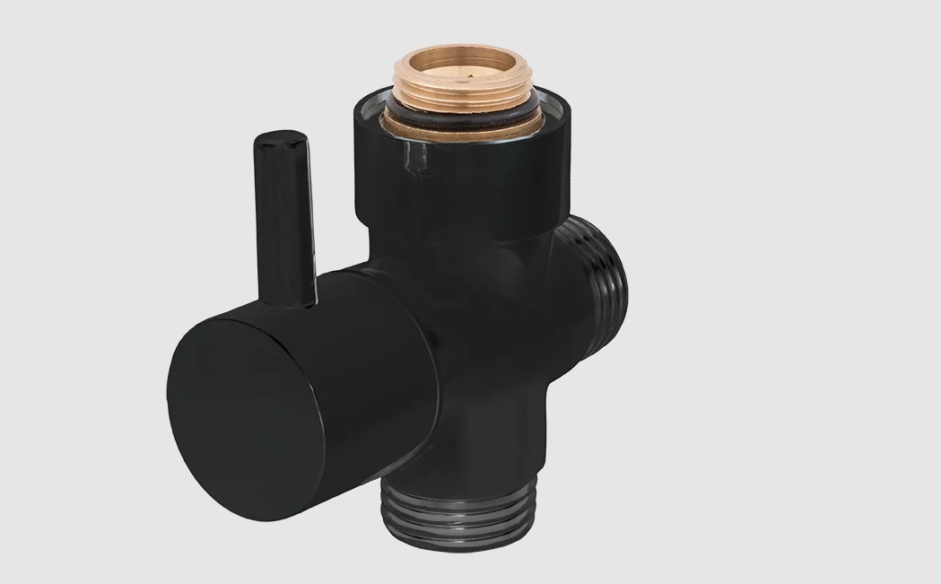 Черный переключатель для душевой колонны идеально сочетается с черными душевыми гарнитурами. Это выглядит исключительно элегантно. В свою очередь, его современный дизайн привносит оригинальность в душевую зону.