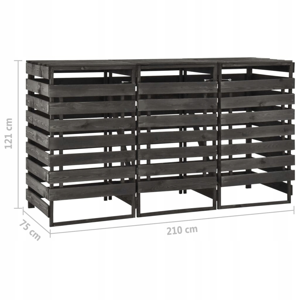 Крышка подняла крышки, которые можно открыть, чтобы облегчить доступ к корзинам при броске мусора. Он также содержит три индивидуальных открывающихся двери спереди, так что вы можете легко удалить корзины, чтобы опустошить. Корпус также имеет закрытие спереди, так что дверь оставалась закрытой. Он был сделан из твердой сосны и окрашен, благодаря тому, что он прочный, долговечный и устойчивый к масле. На крышке будут размещаться три 240-литровые мусорные баки и будут соответствовать декору вашего сада.