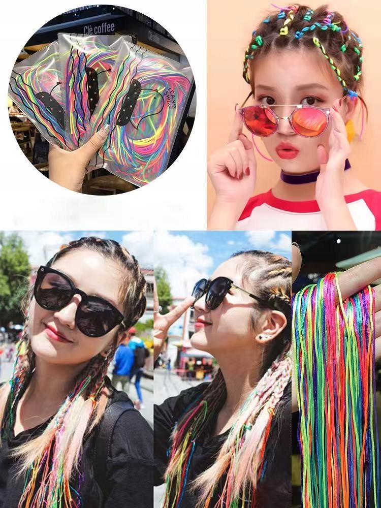 📦 32 кусочки красочных струн для волос в разные цвета и длину (около 90 см ) - достаточно, чтобы создать много разных стилей.