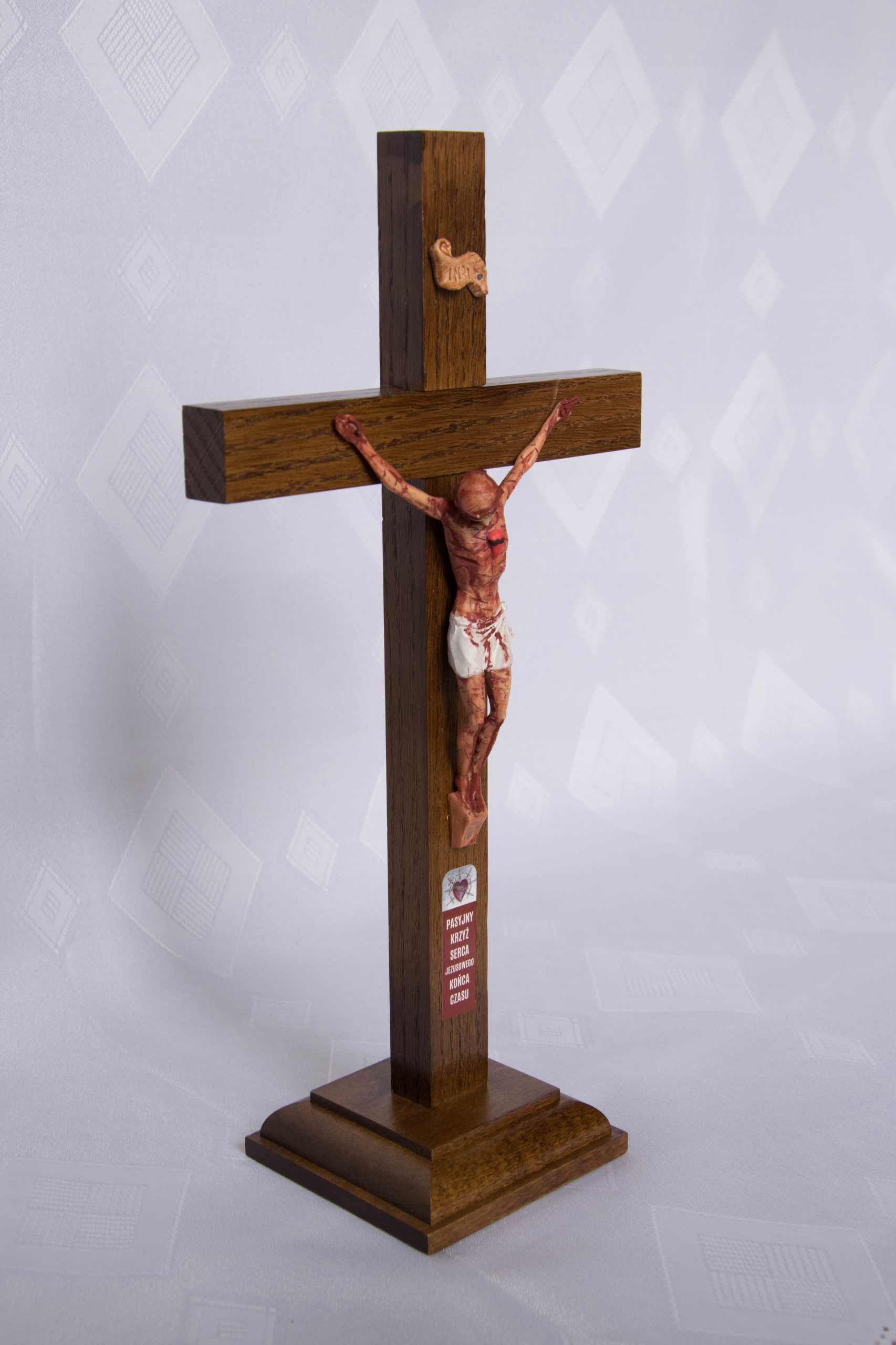 Мистический Крест Благодати, тщательно изготовленный с уважением к образу Иисуса Христа. На нем изображен образ страданий Иисуса на Кресте. Представлено оно так – в честь Пресвятых Ран и Честной Крови Господа и Бога нашего Иисуса Христа, а также победы и торжества Непорочно Зачатой Пресвятой Девы и Матери Божией Марии.