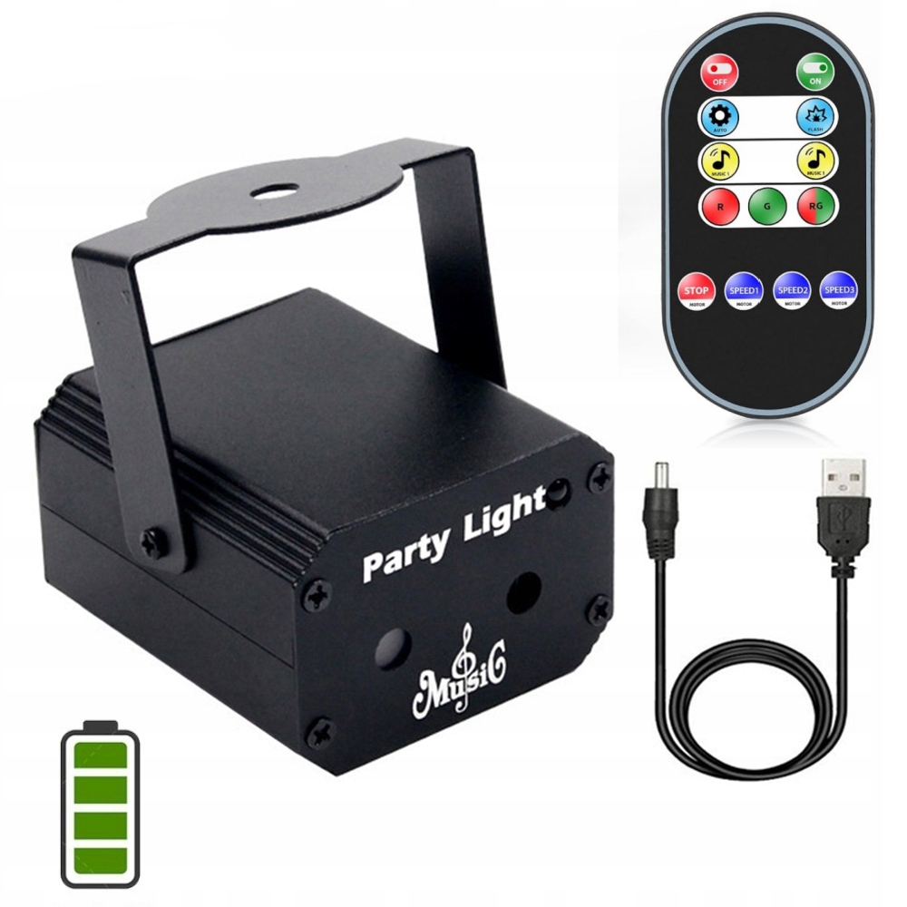 Светодиодный лазерный свет с аккумулятором, 32 схемы освещения, DJ Disco Lighting для вечеринки, лазерный проектор, стробоскочный светодиодный сценический свет, мини-USB, подходящий для семейного дня рождения, Хэллоуин, KTV, бар, рождество, карнавал/семейный караоке/танцы (с пилотом)