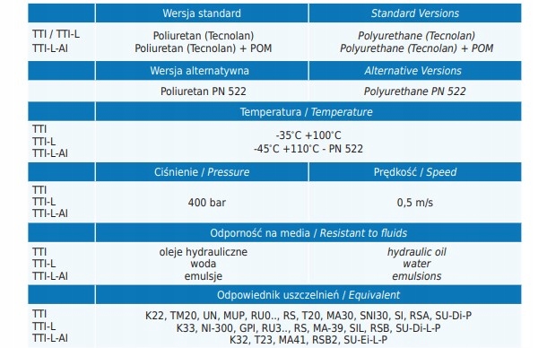 tti тушеное печать, одностороннее действие. Изготовлен из «Tecnolan» полиуретана, асимметричного, обеспечивает оптимальное поршневое уплотнение.