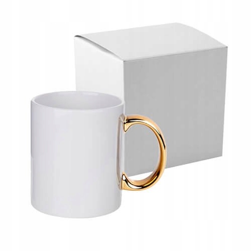 Керамическая кружка 330 мл с золотым ухом и+ покрыта слоем полиэстера для печати в технологии сублимации. Возможность купить за один кусок. Кружка с картонной коробкой.