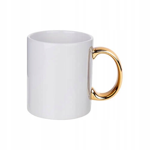 Керамическая кружка 330 мл с золотым ухом, A+, покрытый полиэфирным слоем для печати в технологии сублимации. Возможность покупки у одной части. Недостаток: 330 мл