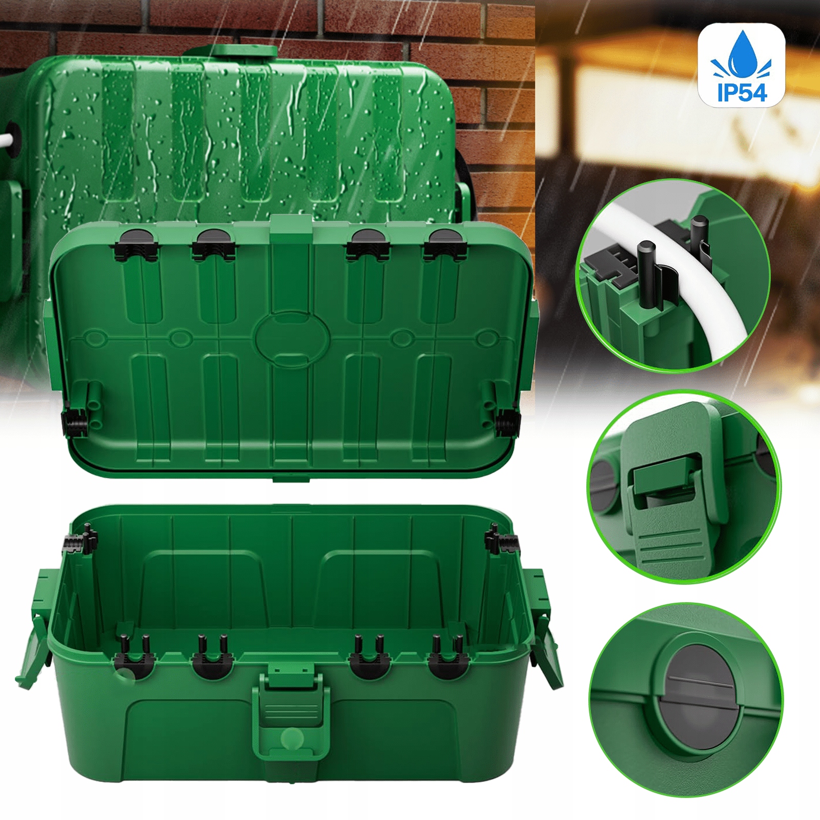 ✔Предназначен для обеспечения безопасности и защиты временных наружных кабельных соединений. Благодаря своим большим размерам (34,5 x 24 x 12 см) и 6 кабельным вводам (4 спереди + 2 сбоку) это комплексное решение для защиты уличных удлинителей, розеток с таймером, удлинителей, больших адаптеров и большинства других электрических соединений.