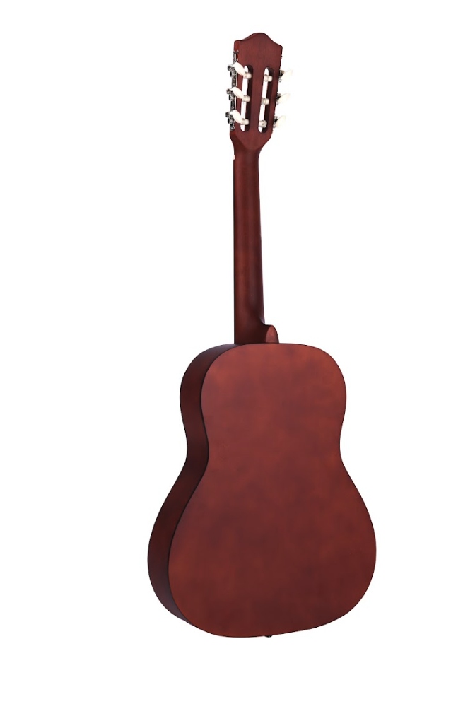 Классическая гитара характеризуется конструкцией ручной работы с корпусом из липы, головкой грифа из березы, накладкой грифа из мореного дерева, деревянным корпусом и защитной отделкой задней части. , ламинат, розетки из липы, клавиши хром.