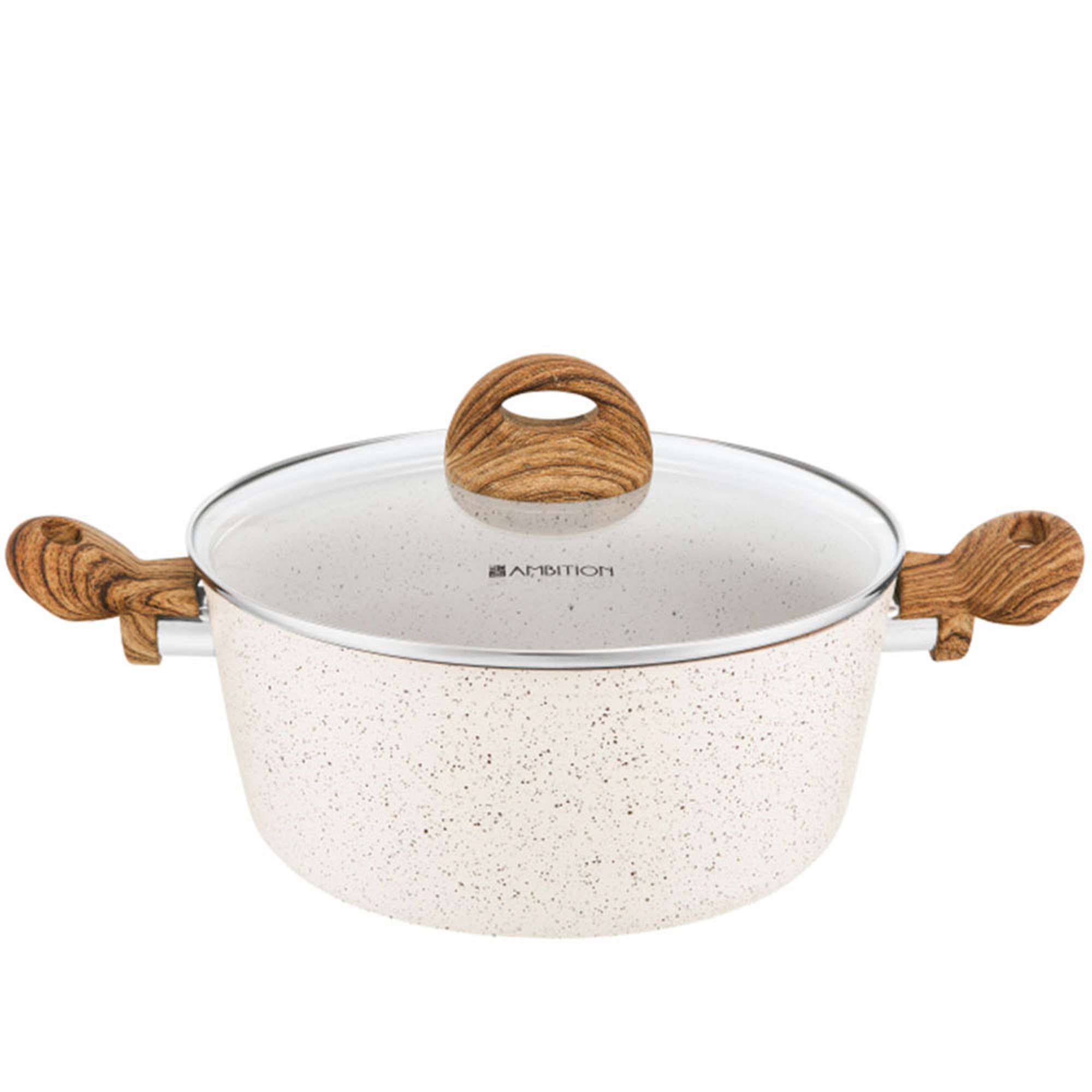 Кастрюли и сковороды Nature изготовлены из кованого алюминия, они прекрасно аккумулируют тепло, делая приготовление пищи более энергоэффективным. Они имеют индукционное дно толщиной 3 мм, устойчивое к деформации. Внутри покрыт антипригарным покрытием Pfluon Cookmark™ с уникальным внешним видом, имитирующим камень. Снаружи покрыто жаростойким покрытием с шероховатой поверхностью того же цвета, что и внутренняя часть. Крышка из закаленного стекла. Ручки покрыты специальным материалом Soft Touch, напоминающим дерево, обеспечивающим надежный хват в руке.