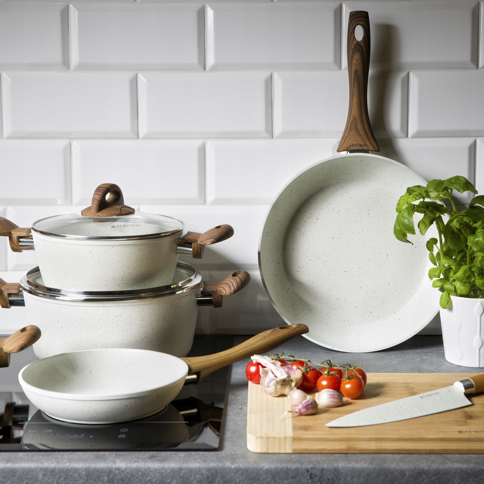 Набор кастрюль, сковородок и ножей Nature с овощечисткой идеально подойдет как для повседневного приготовления пищи на кухне, так и в праздничные дни, когда вы готовите большие объемы блюд. Nature – это уникальная коллекция посуды с неповторимым внешним видом, вдохновленная природой. Корпус сосуда своей фактурой напоминает камень, а ручки имитируют дерево.