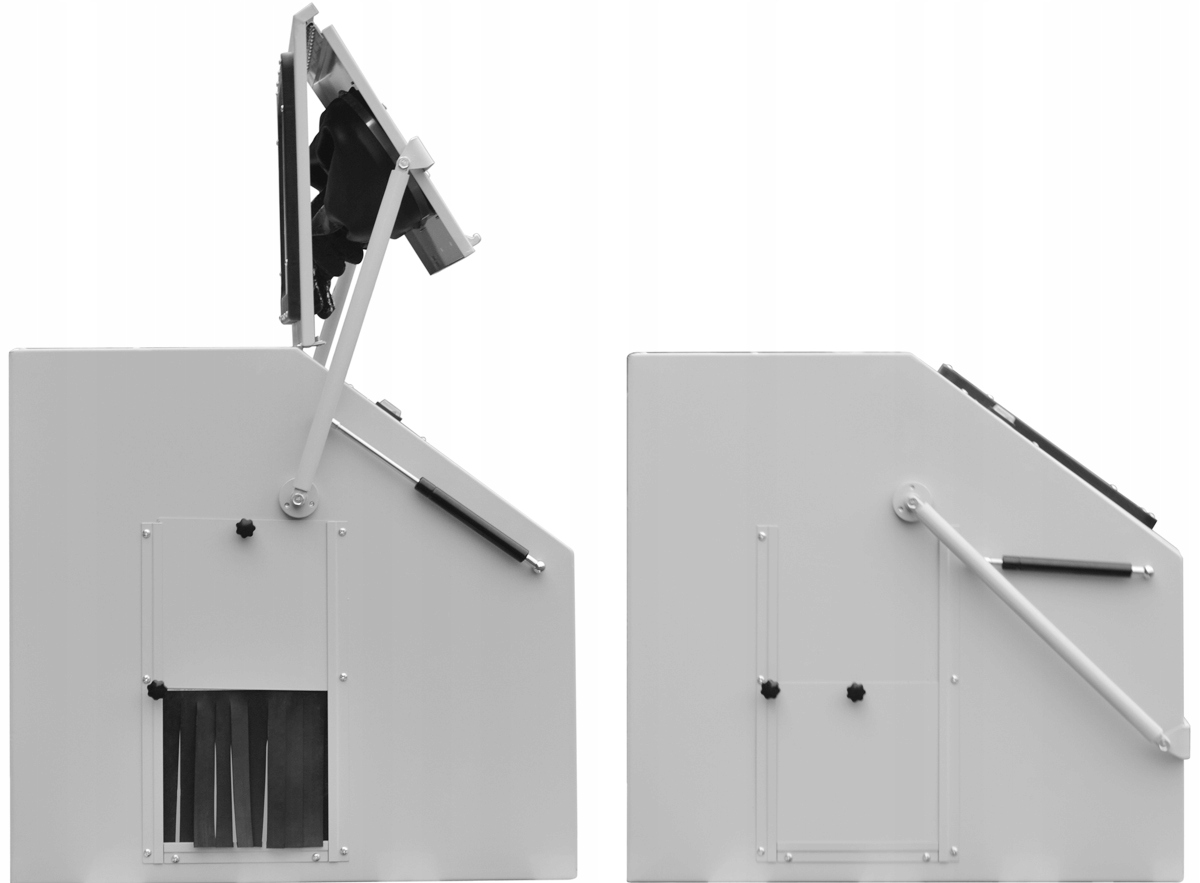 - передняя дверь с резиновыми периферийными уплотнителями для обеспечения беспылевой работы.