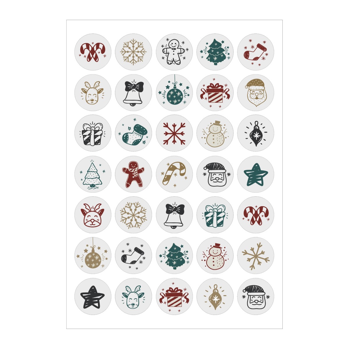 Рождественские наклейки на Рождество идеально подходят для украшения подарков. Доступны различные дизайны. Рождественские наклейки размещены на удобном листе формата А4. На каждом листе 35 различных наклеек. Круглые наклейки — это и украшение подарочной упаковки, и украшение рождественской открытки.