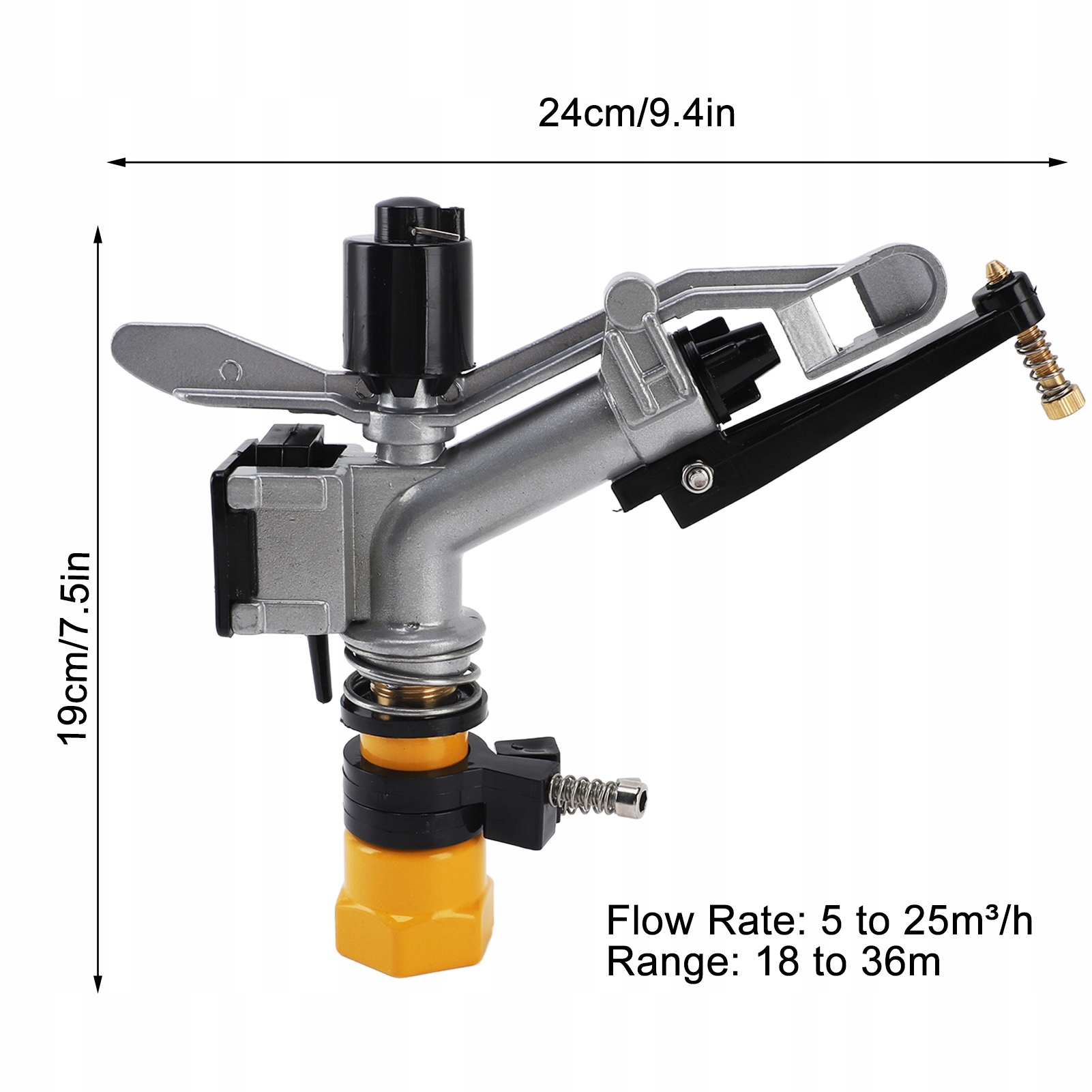 3. Расширенный диапазон: наш ударный спринклер предлагает очень большой диапазон от 18 до 36 м, подходящий для орошения больших пахотных полей или ярдов. Эта функция резко повышает эффективность работы и сокращает время, затрачиваемое на ирригационные задачи.