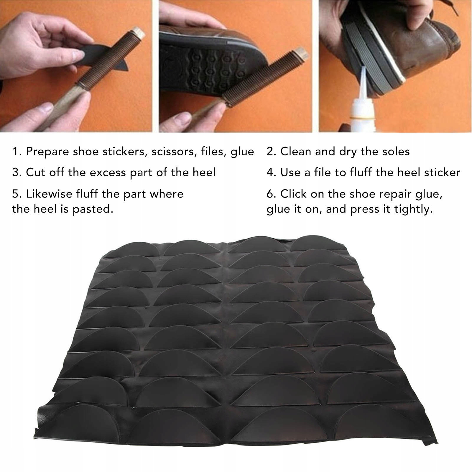 2. Универсальное использование: подушка под подошвой обуви идеально подходит для ремонта используемых каблуков различных кожаных мужских и женских обуви, кожаных туфель, ежедневных и других обуви.