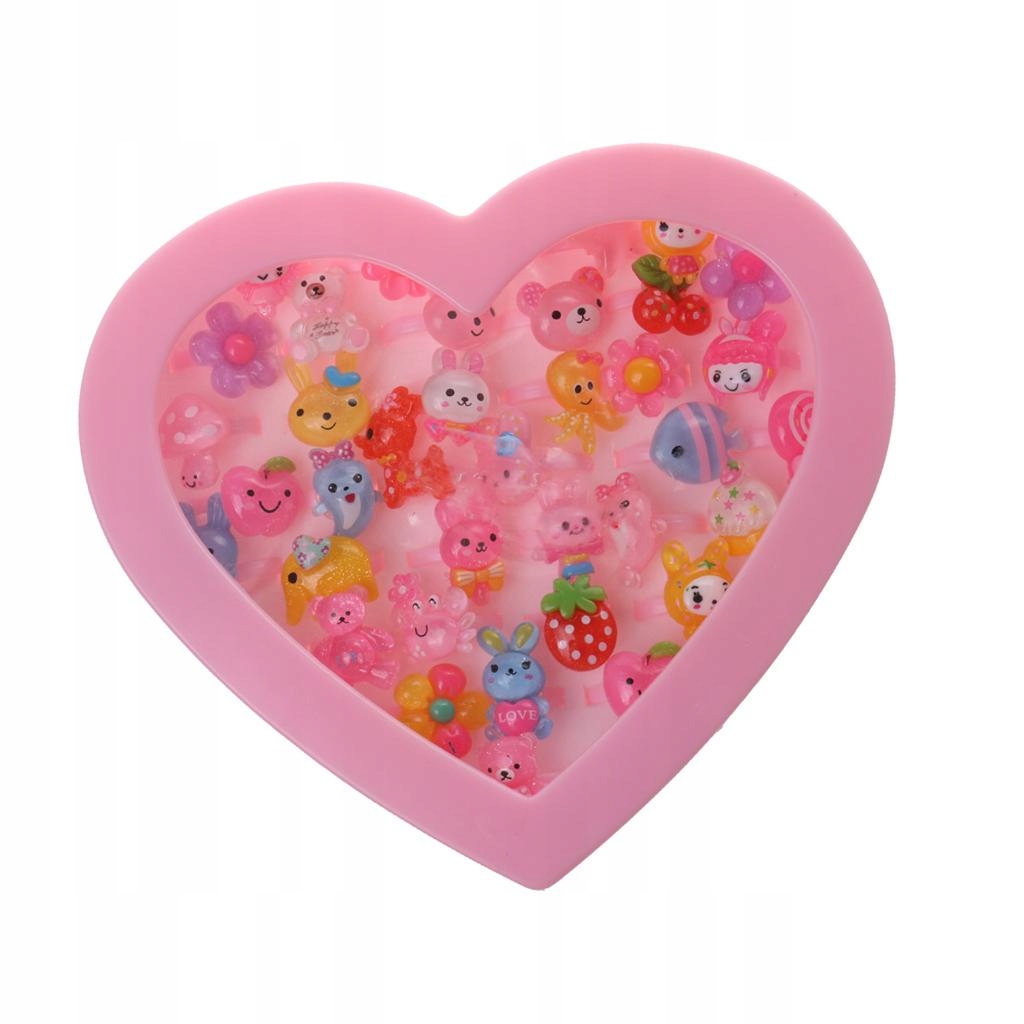 36 очаровательных колец в красивой розовой коробке в форме сердца