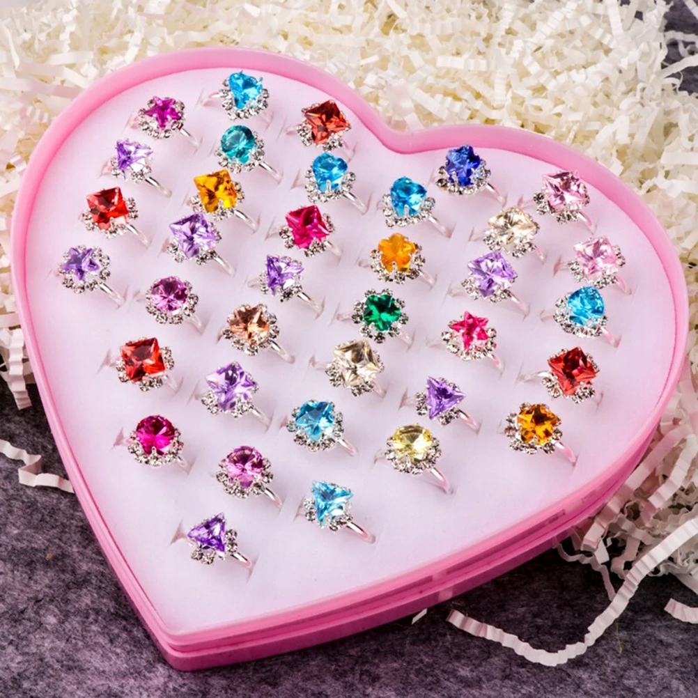 Это коробка в форме любви, содержащая 36 детских колец, безопасная, и вы можете использовать ее без опасений. Эти кольца благодаря форме и дизайну бриллиантов красивы и изысканны. Эти модные кольца прекрасно подойдут как детям, так и взрослым, не беспокоясь о размере.