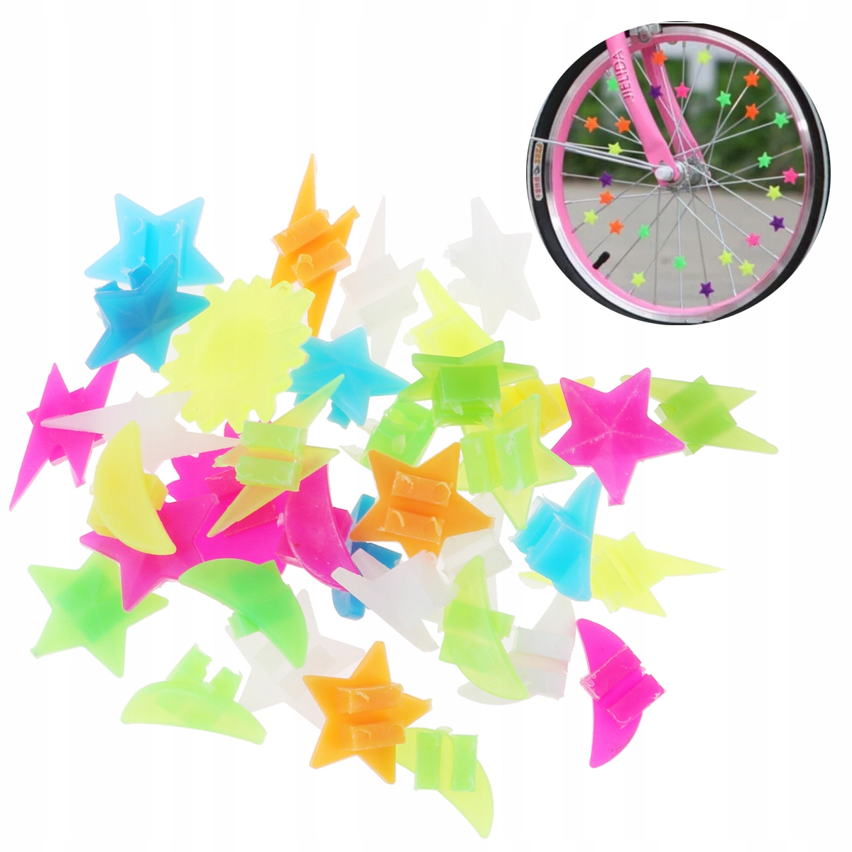 36 шт. ПЛАСТИКОВЫЕ НАКЛАДКИ НА ВЕЛОСИПЕДНЫЕ СПИЦЫ/ЧЕХЛЫ С ЦВЕТНЫМИ ЭЛЕМЕНТАМИ