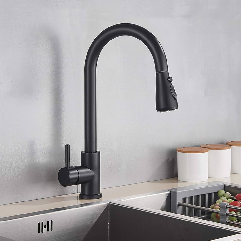 360 ° Кухонный смеситель Регуляция 3 Режимы работы Черная нержавеющая сталь из нержавеющей стали