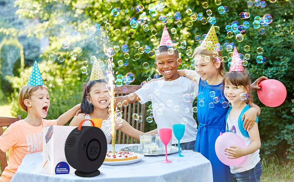 Тысячи мыльных пузырей создаются одним нажатием кнопки благодаря машине для мыльных пузырей, которая выдувает идеальные радужные пузыри. Этот пузырьковый автомат подарит бесконечное веселье и сказочную атмосферу для различных мероприятий, таких как свадьбы, дни рождения, вечеринки, сады, пляжи, бассейны, кемпинг и т. д. Идеально подходит для вечеринки на свежем воздухе — веселитесь со своими детьми. Лучшие подарки на Пасху, Рождество и День святого Валентина