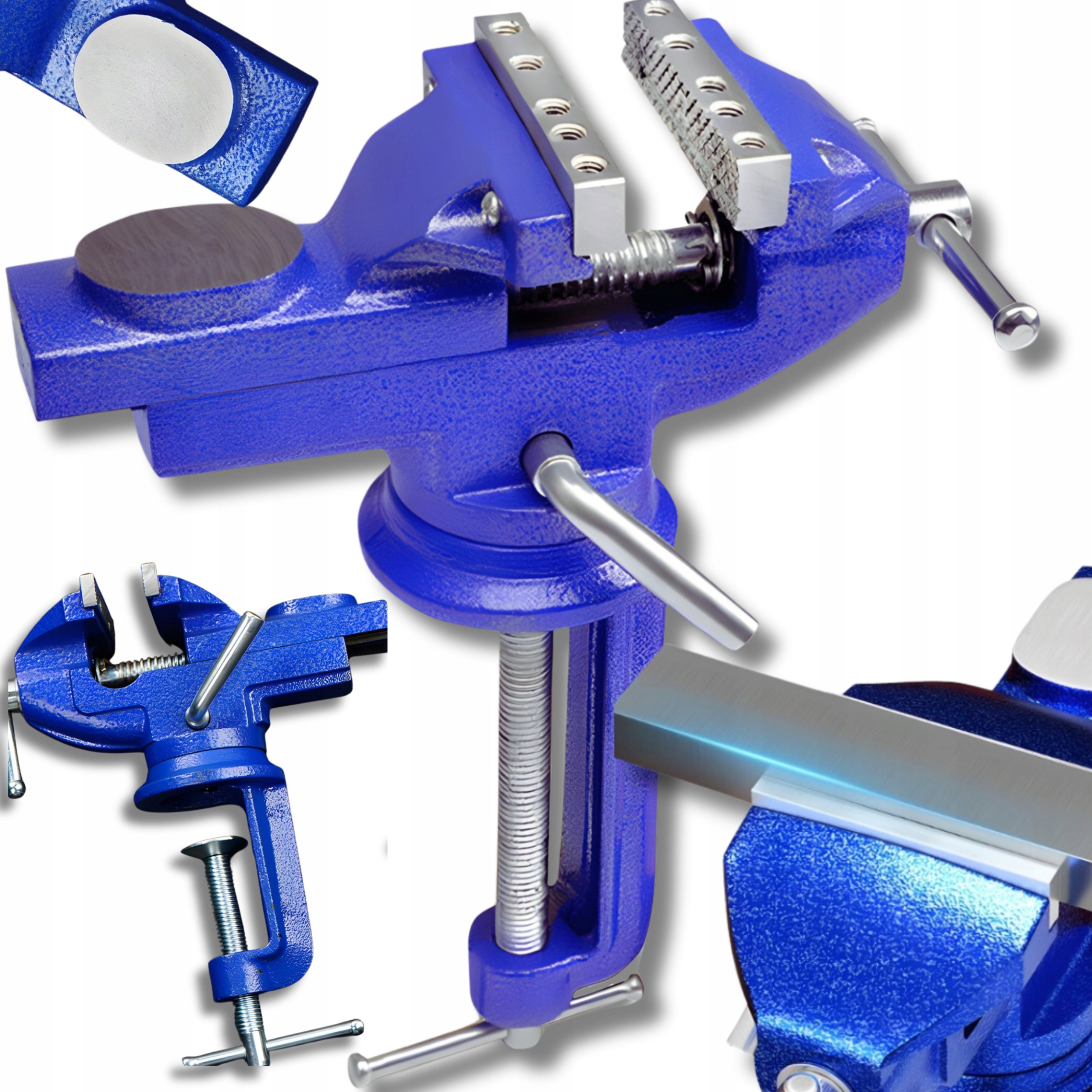 Этот ротационный стол порок идеально подходит для сохранения различных мелких деталей. Его универсальность и точность делают его подходящим для многих приложений, не только в профессиональных семинарах, но и для случайного домашнего использования, в гараже , во время хобби, незначительных ремонта, моделирования, столярных изделий, ювелирных изделий и многих других задач, которые требуют использования вице -президента. Дополнительным преимуществом является mini Anvil , позволяющий модифицировать элементы без достижения другого инструмента