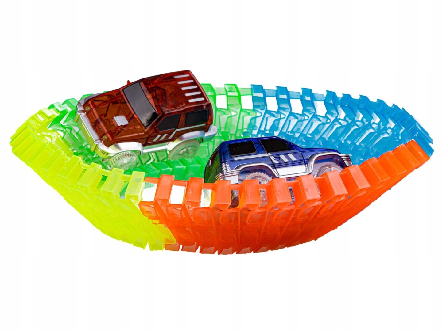 На этом суперспуске полно препятствий, поэтому спуститься по нему на этом светящемся гоночном автомобиле просто потрясающе! Это почти как бездорожье, полное экстремальных поворотов, подъемов, петель и спусков.