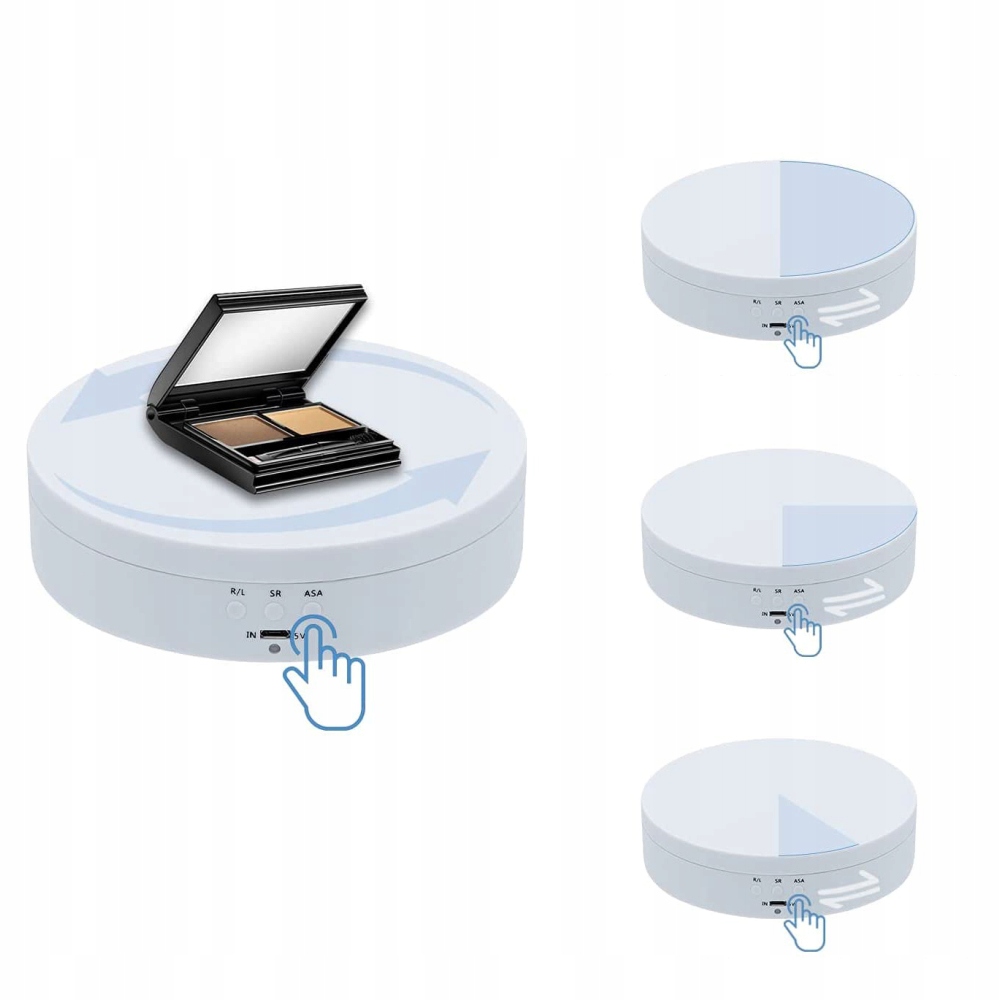 - Поворотный стол имеет диаметр 13,8 см и высоту 3,5 см и вращается. постоянно и равномерно, создавая великолепный эффект во время видеозаписи и презентаций продукции.