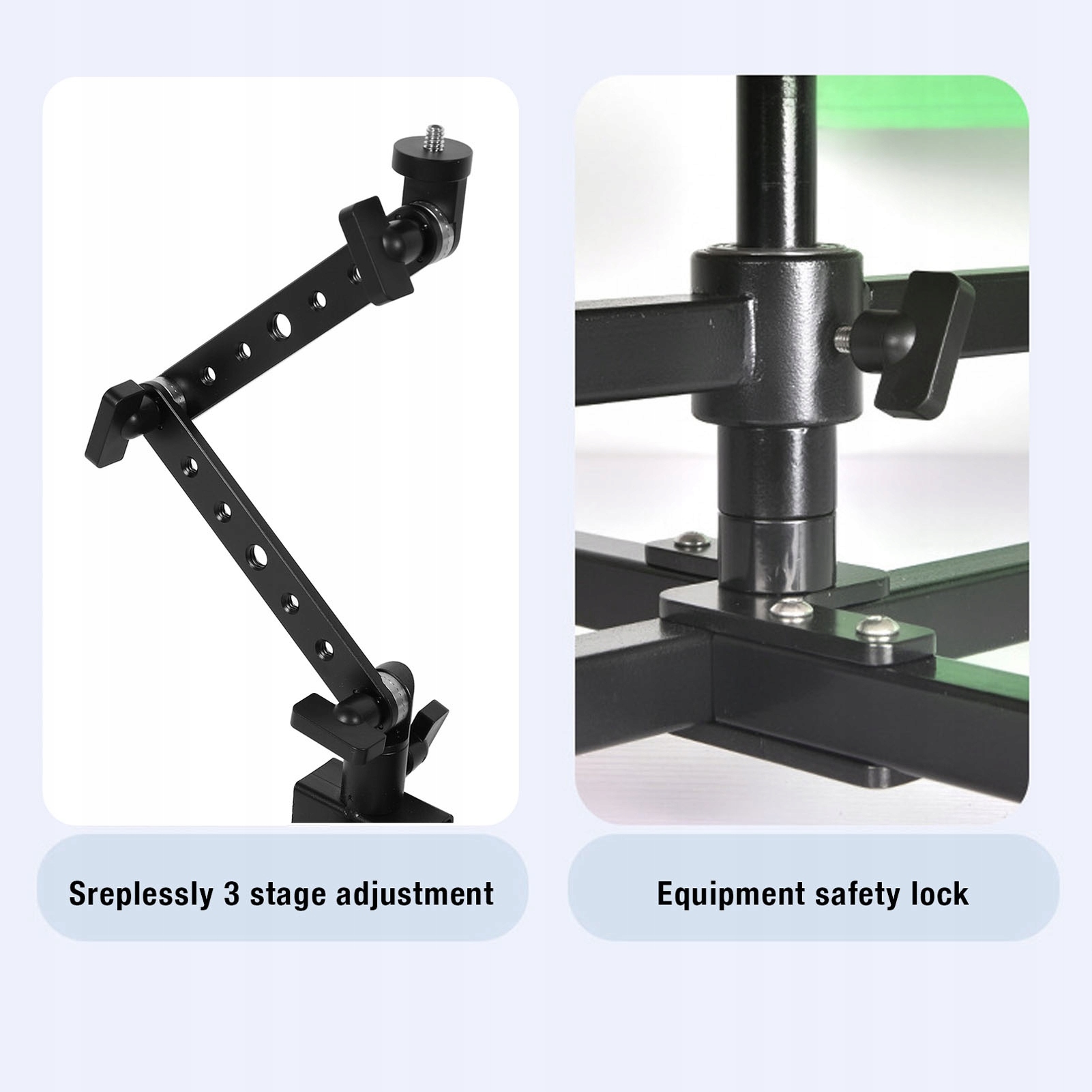 3. Регулируемый угол: кронштейн с камерой имеет много дверных ручек для прикрепления под разными углами. База имеет блокирующий переключатель для простого хранения, когда он не используется.