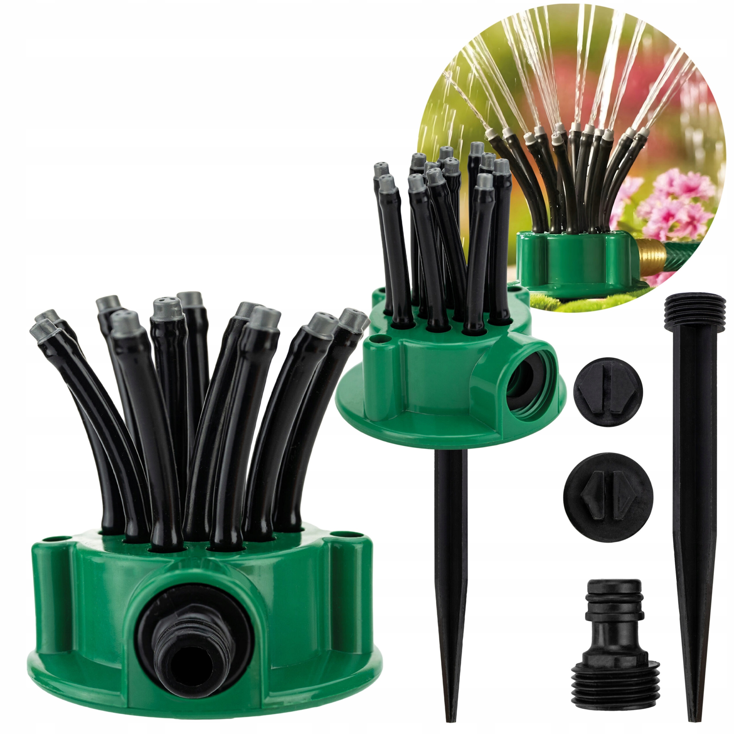 Наш садовый разбрызгиватель оснащен 12 гибкими форсунками, что является его ключевым преимуществом, обеспечивающим исключительную эффективность и точность полива.