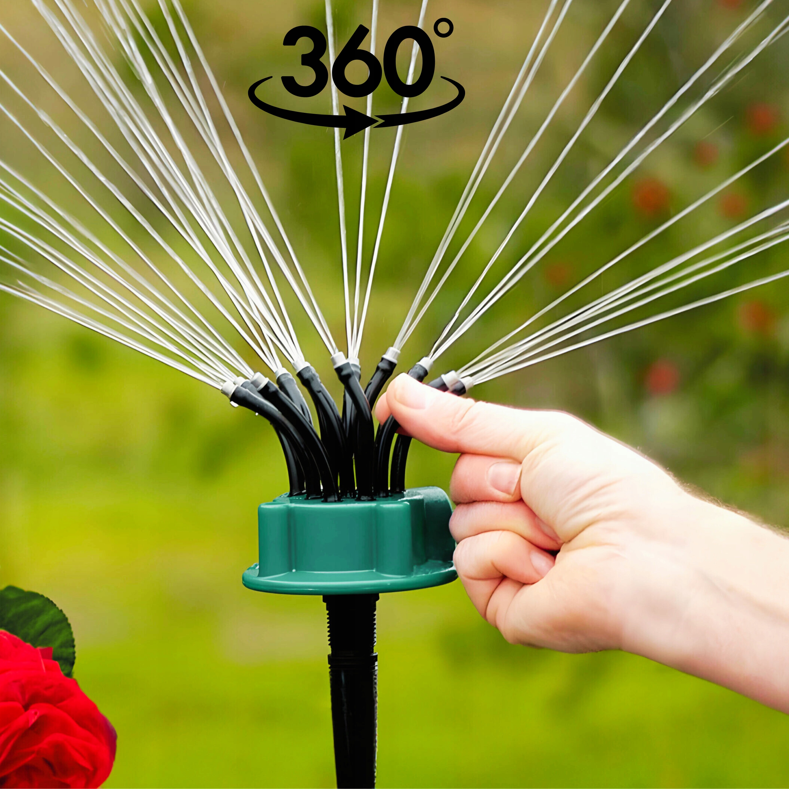 ✅С вращающейся головкой: Разбрызгиватель имеет головку, вращающуюся на 360 градусов, что обеспечивает равномерное распределение воды по большой поверхности.