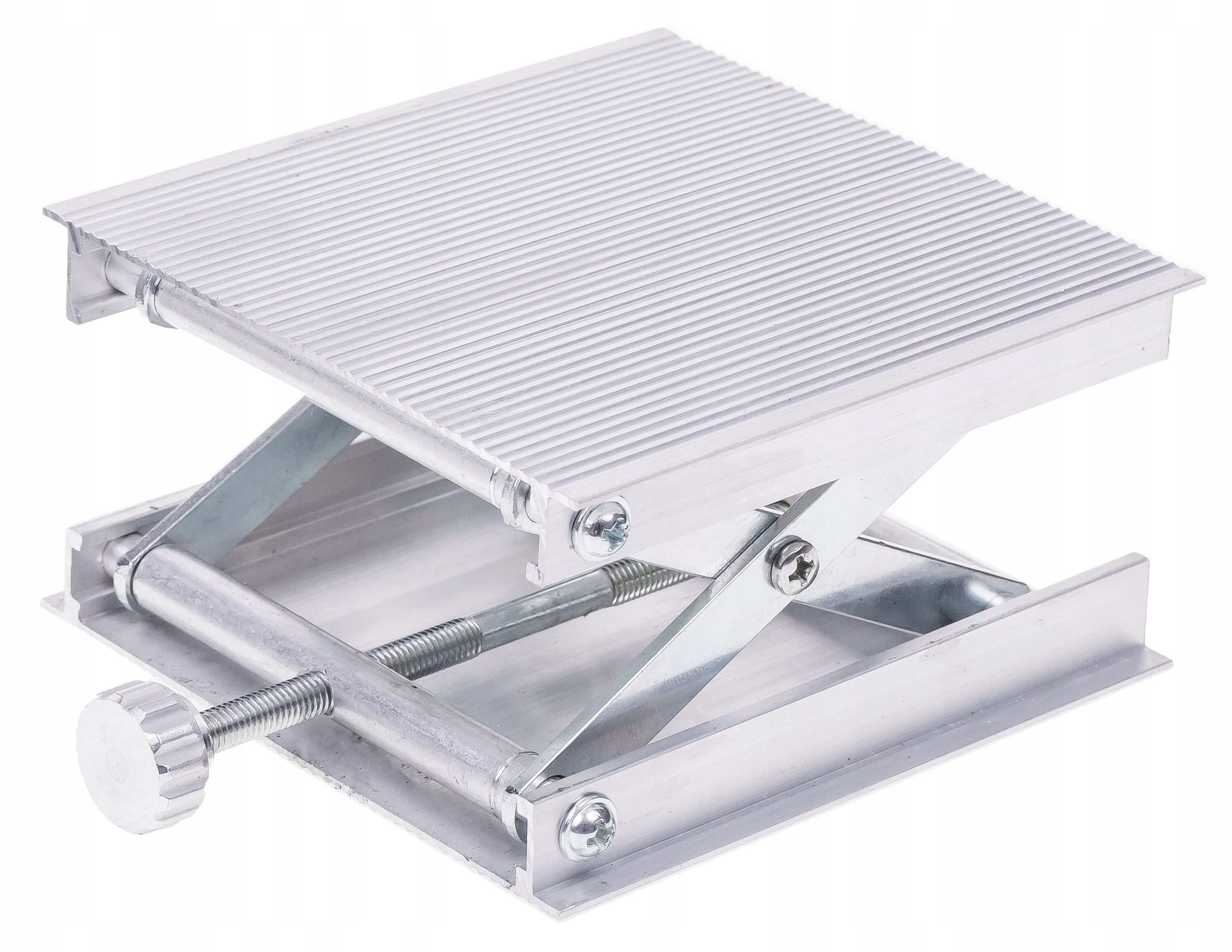 Регулируемая полка из алюминия позволяет точно регулировать высоту с помощью боковой ручки.