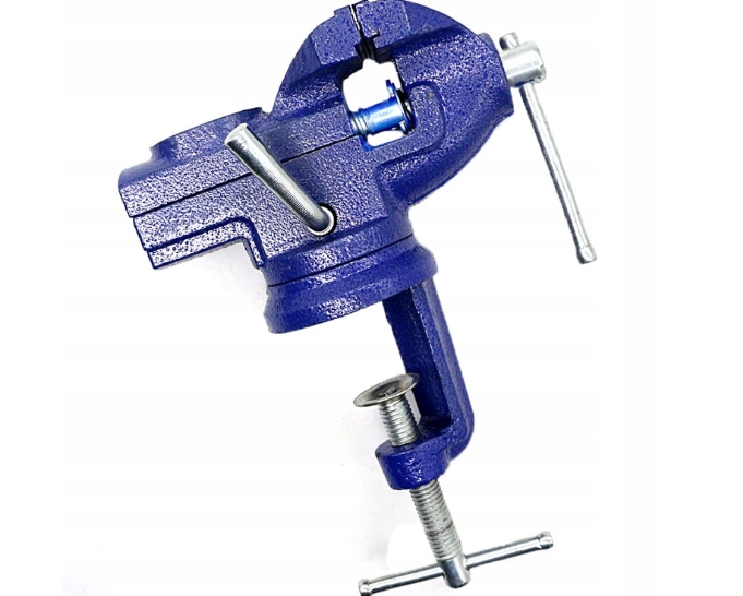 Для наших мастерских отлично подойдут слесарные тиски. Благодаря широкому для его размеров расстоянию между губками мы можем удерживать трубу, печатную плату и многое другое. Тиски также выполняют функцию наковальни. Крепление тисков позволяет крепить их к столешнице размером не более 55 мм.