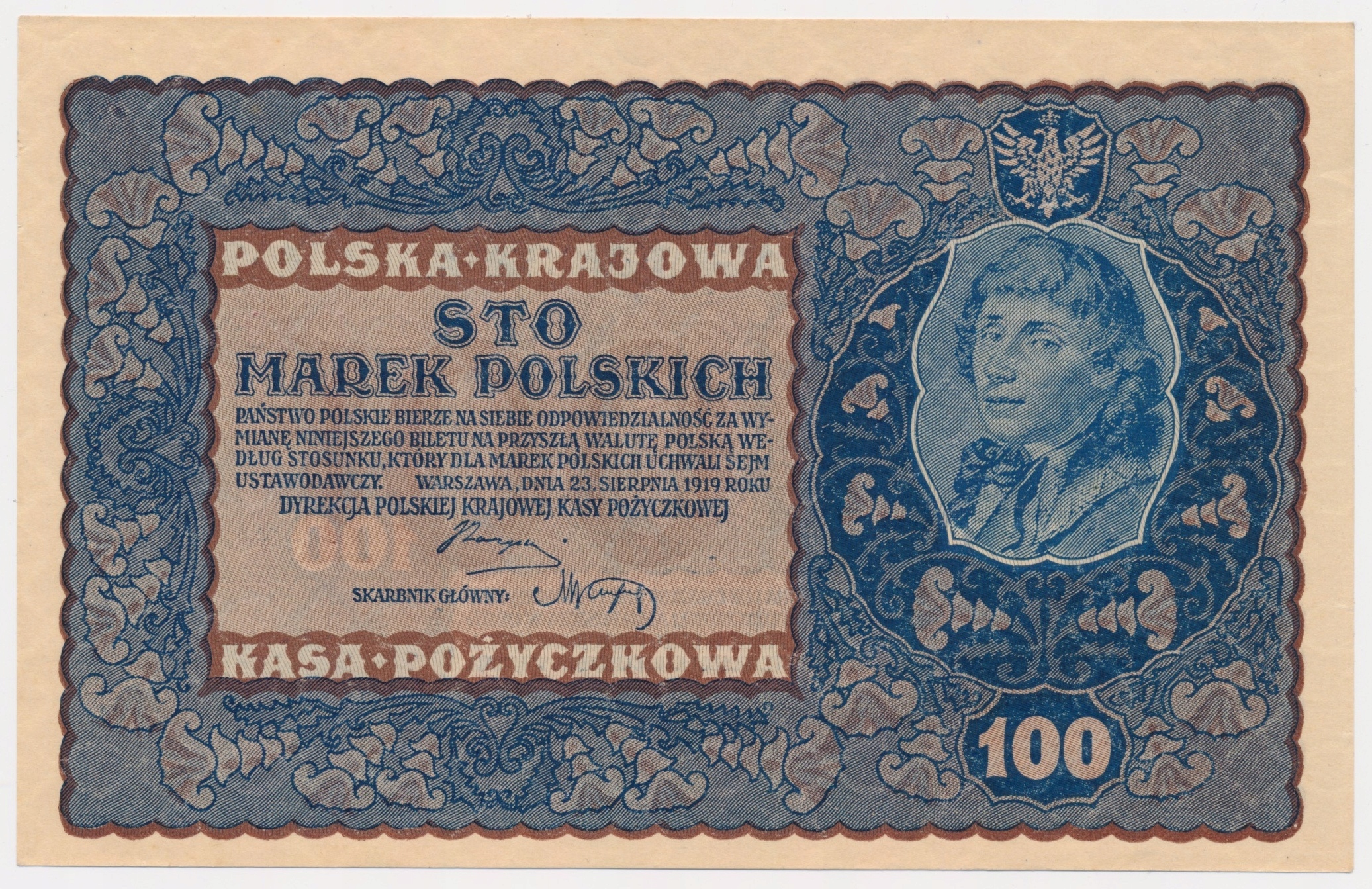 3626. 100 мкп 1919 р. - IC Serja W - 1/1- вул.