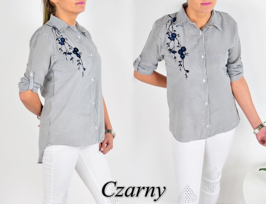 365 ЖІНОЧА сорочка в смужку ВИШИВАНА КВІТКА S / M