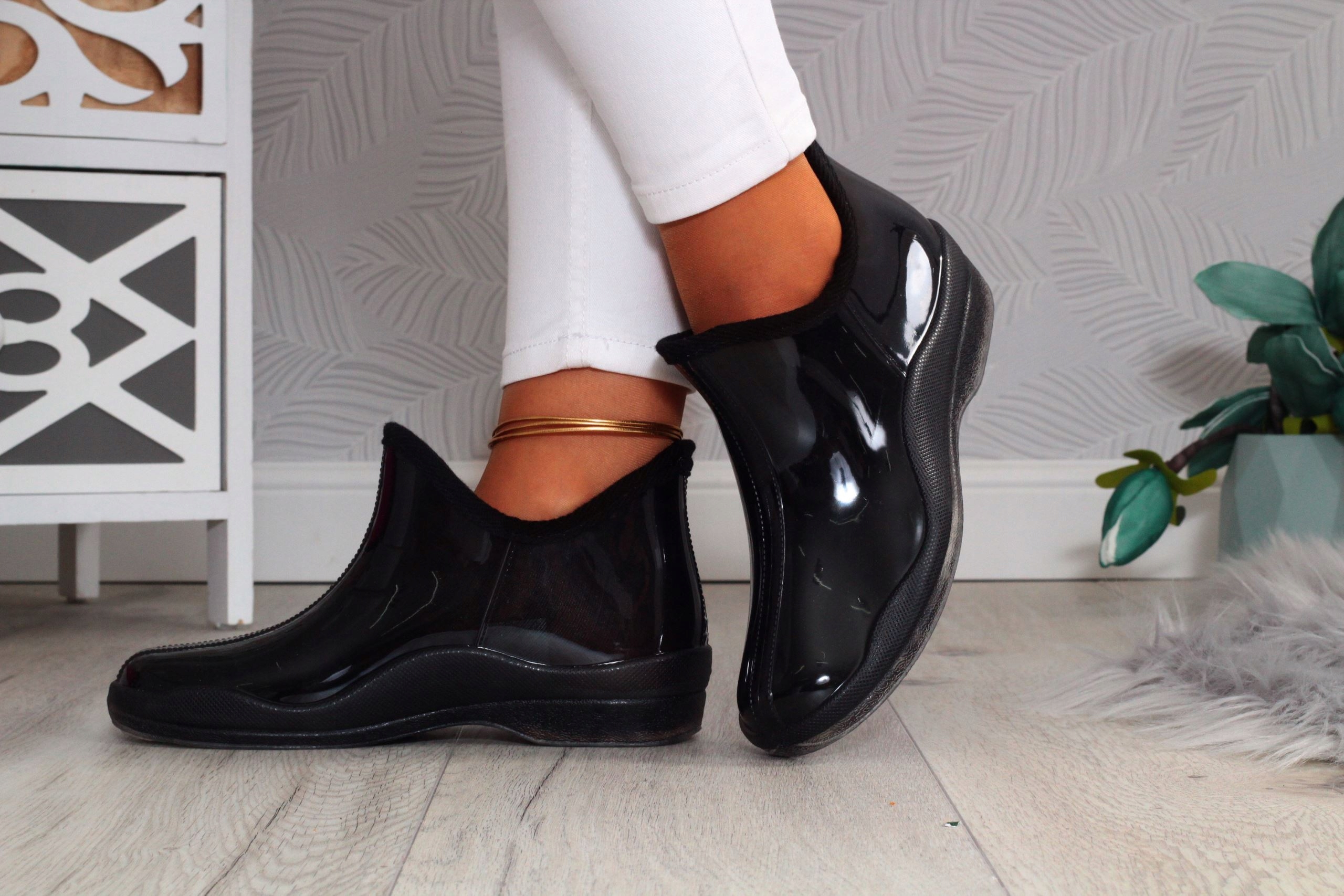 369* Black Boots Женские элегантные резиновые сапоги с низкой резиновой сапогами