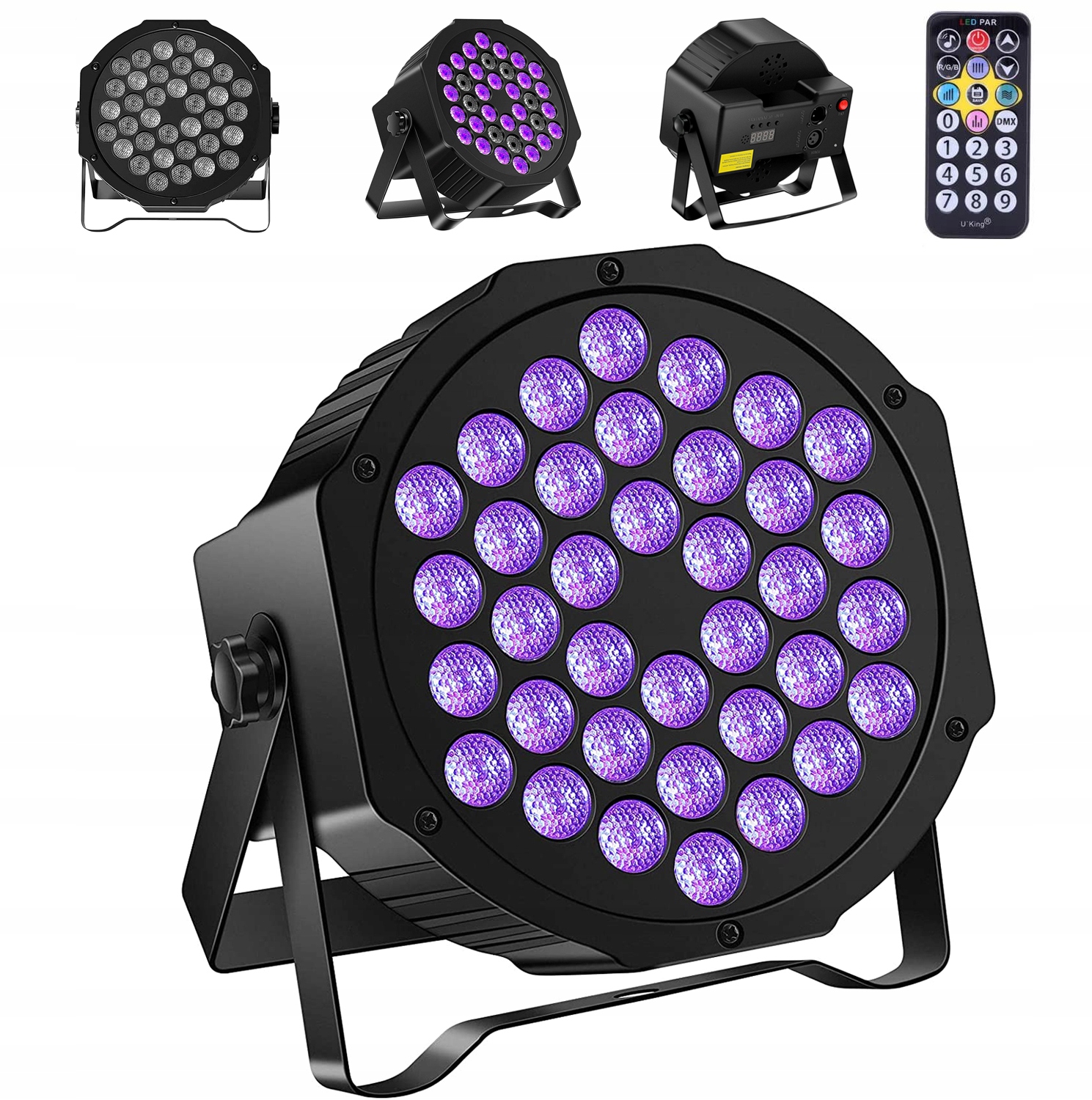 36LED UV -эталонный свет с новейшими светодиодными технологиями, обеспечивая яркие эффекты ультрафиолетового освещения и гладкое смешивание цвета, этот свет поддерживает различные режимы голосовой активации / автоматический / DMX / Master и Slave.