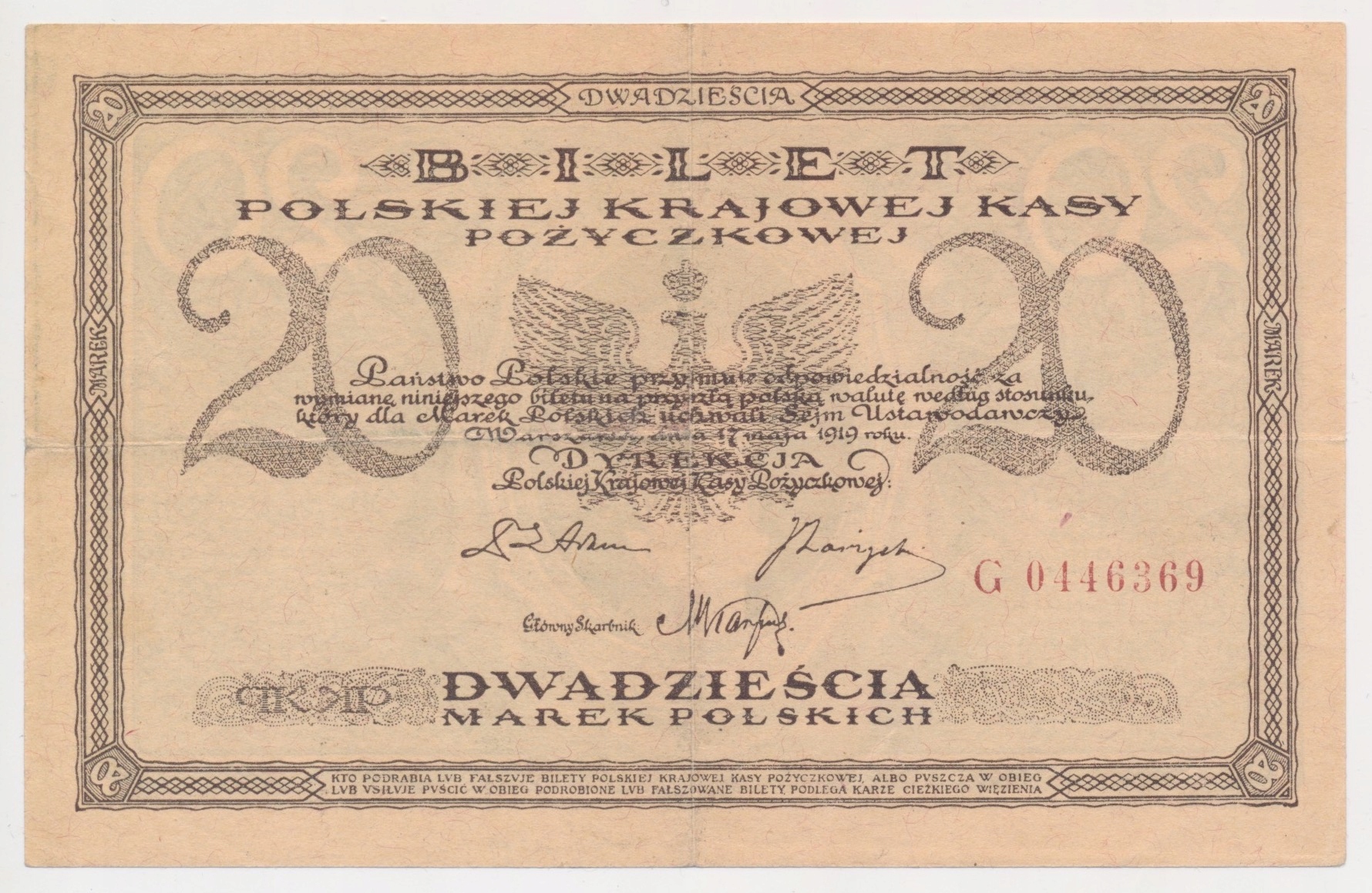 3761. 20 mkp 1919 - G - st. 3+ piękny