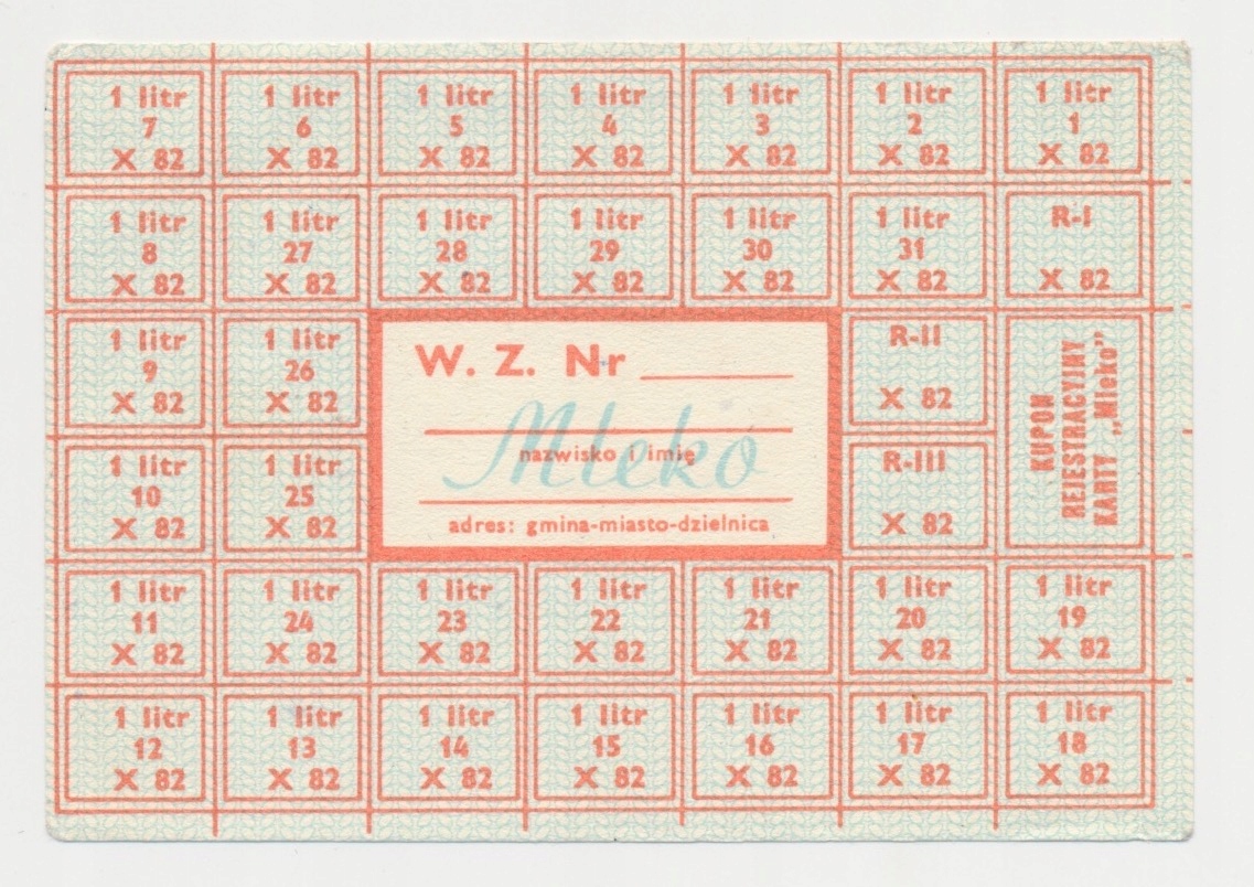 3957. ПРЛ Харчова карта 1982 Жовтень Молоко