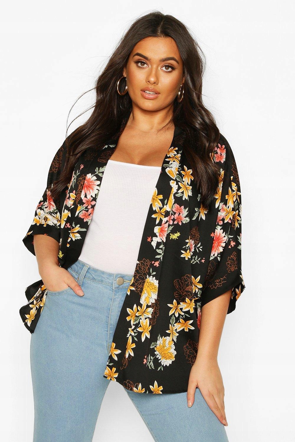 3B6A63 Boohoo Plus Black Kimono Pads с цветами A02 3XL