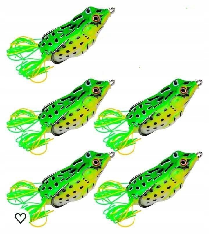 - 5 лягушатая приманка в 5 реалистичных цветах кожи. Замечательные рыболовные лягушки с превосходной способностью прикрепляться к щуке, большой -софа/маленького окуня, Zander, пятнистого окуня и форели. бросание. Верхние части и боковые стороны окрашены. Вы можете раскрасить нижний желудок в правильных цветах, чтобы адаптироваться к разным водам