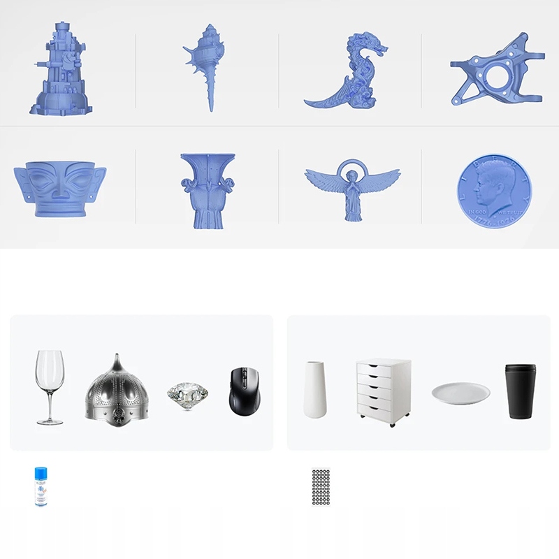 re -calibration: да Сканирование специальных объектов: используйте спрей для сканирования прозрачного, темного или сильно отражающего света объектов.