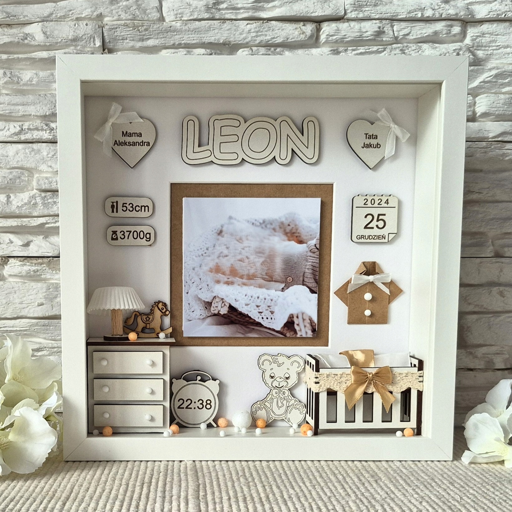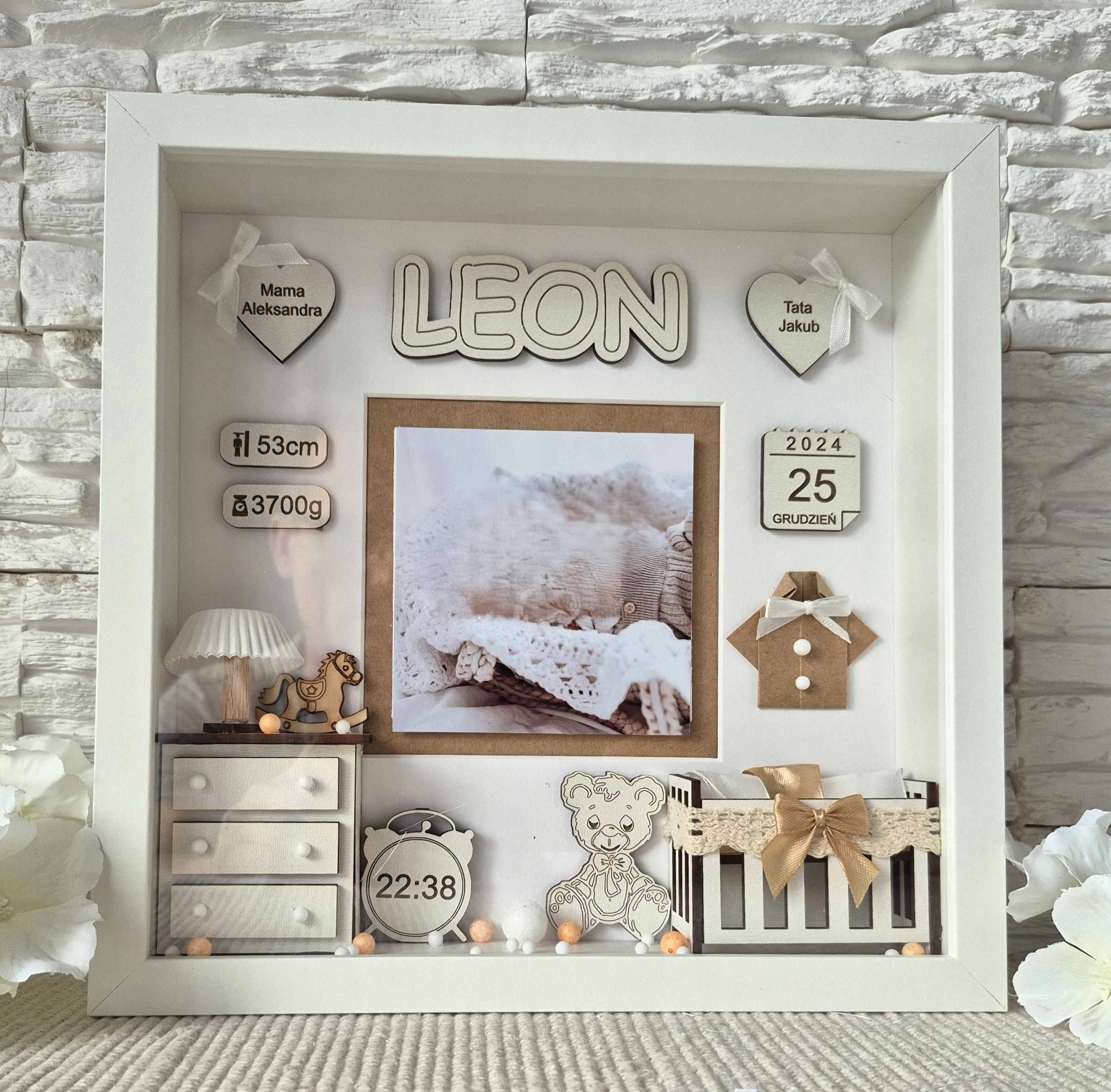 ✅ Метрика на день рождения каждого ребенка - это уникальный сувенир для его жизни и его родителей. Уникальная и уникальная идея подарка. Сделанный в качестве ручной работы в белом раме с аксессуарами, как на фото, он создает эффект 3 D. Рамка может быть поставлен на мебель (она имеет свою ногу) или повесить на стену. Используемые цвета бежевые и коричневые, что делает его подходящим для мальчика и девочки. По запросу мы можем изменить цвета в соответствии с рекомендациями, отправленными в рамках наших возможностей