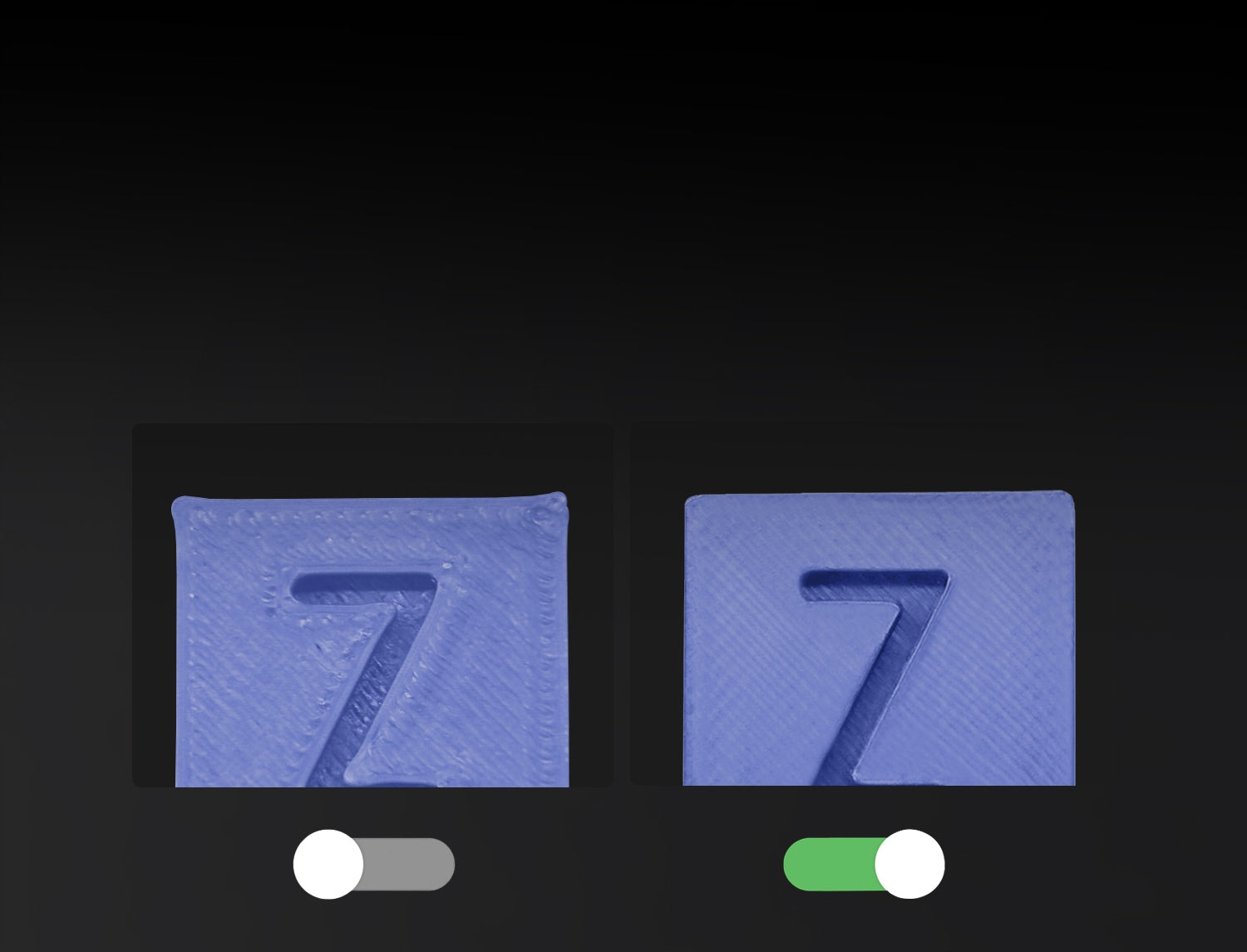 Печатные слои сплющиваются и уменьшаются, чтобы минимизировать сопротивление подъема, что обеспечивает превосходное качество печати на более высоких скоростях