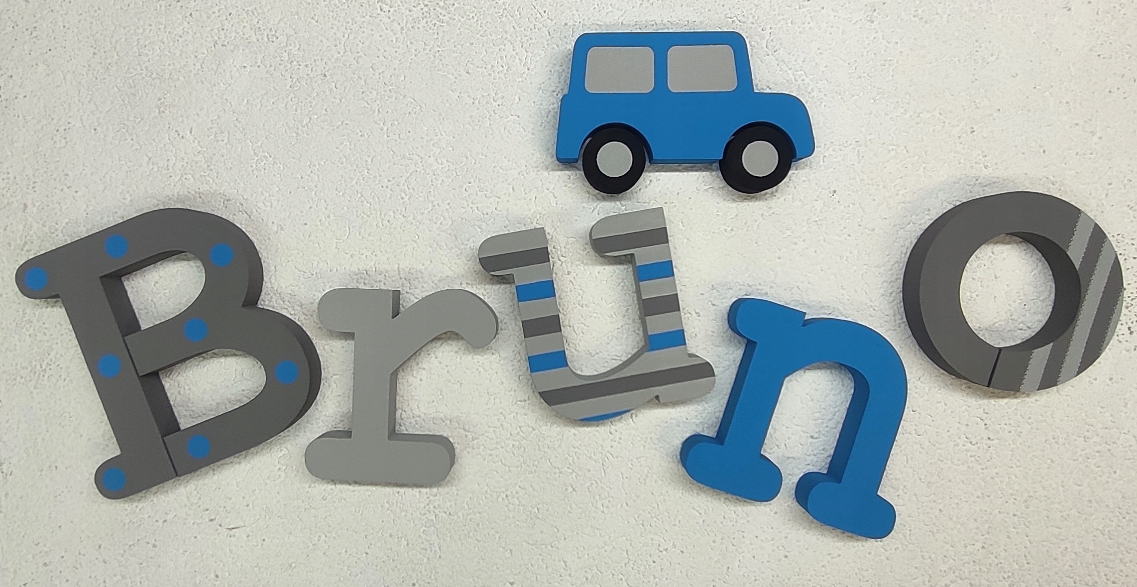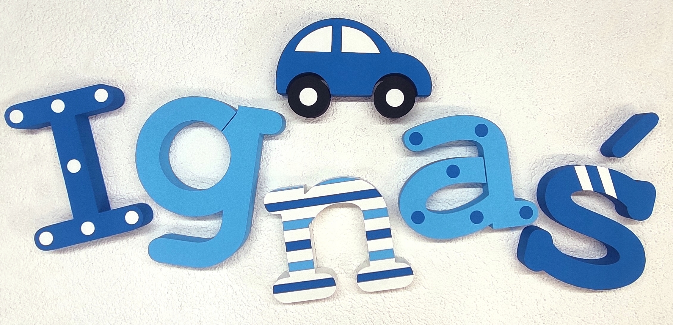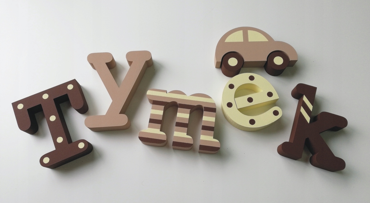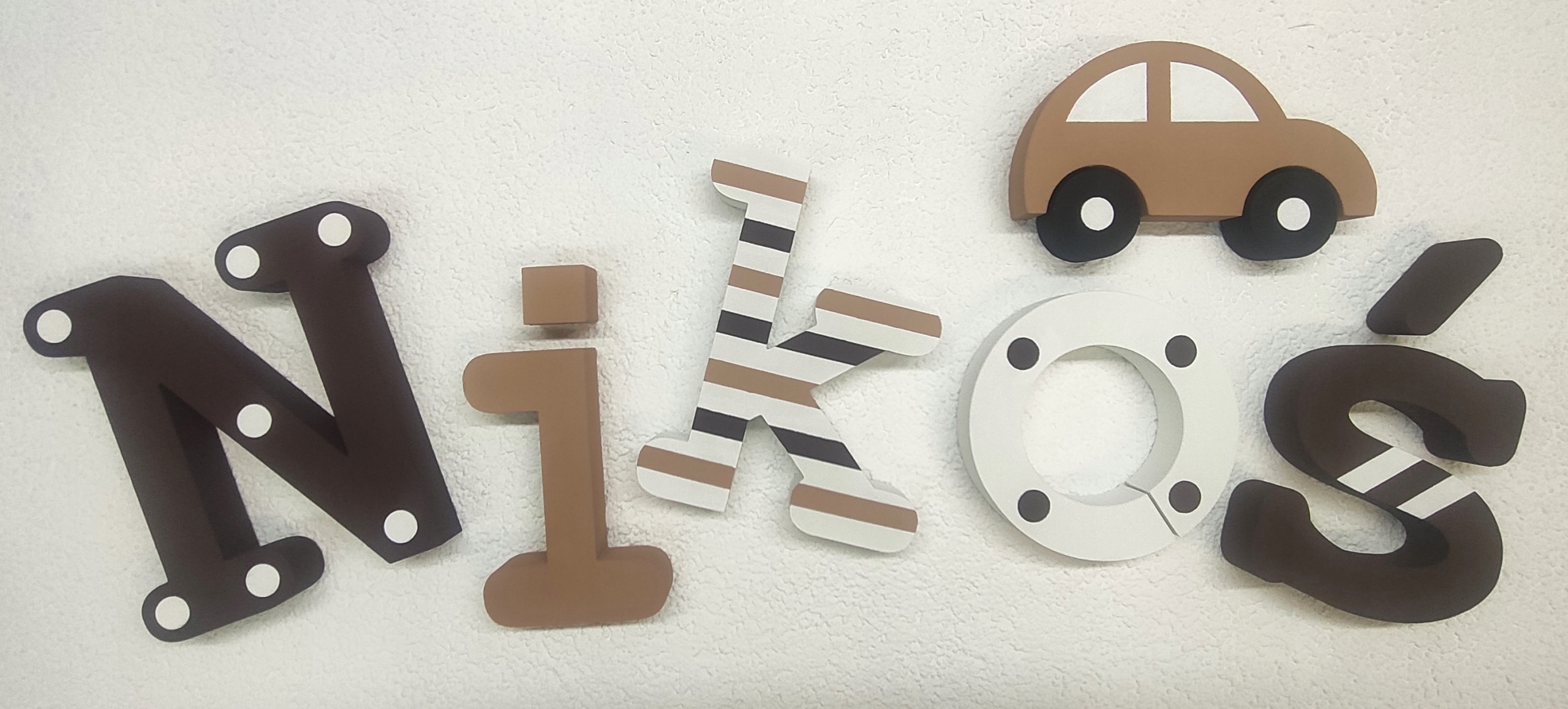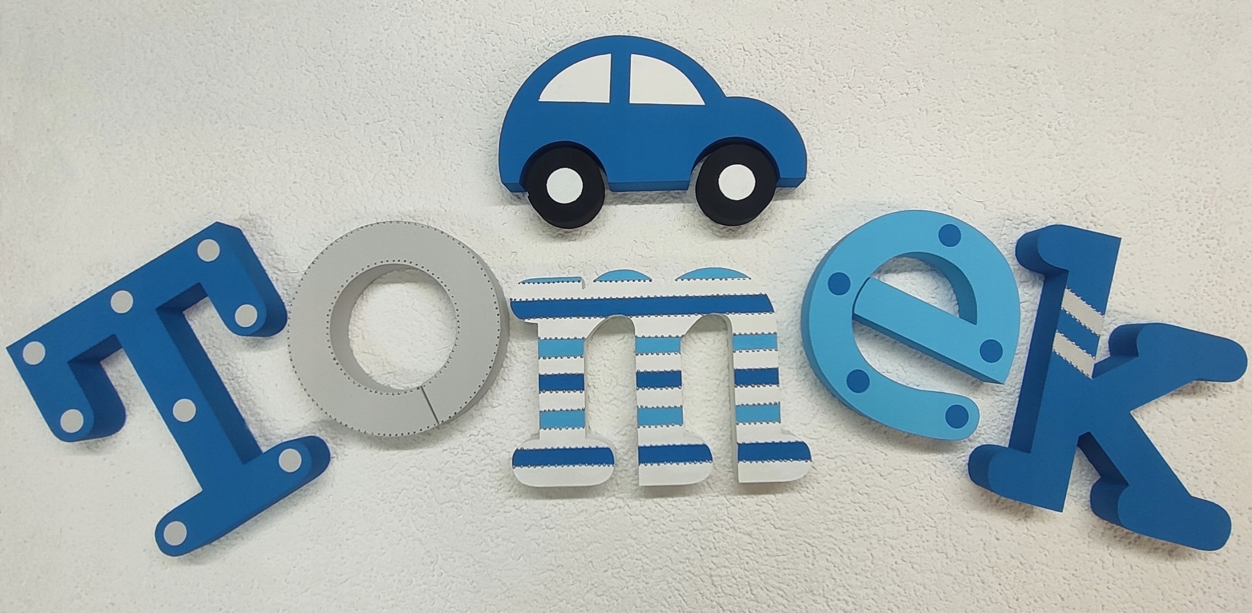 3D БУКВЫ НА СТЕНУ ИМЯ РЕБЕНКА 5 шт + 1 декор