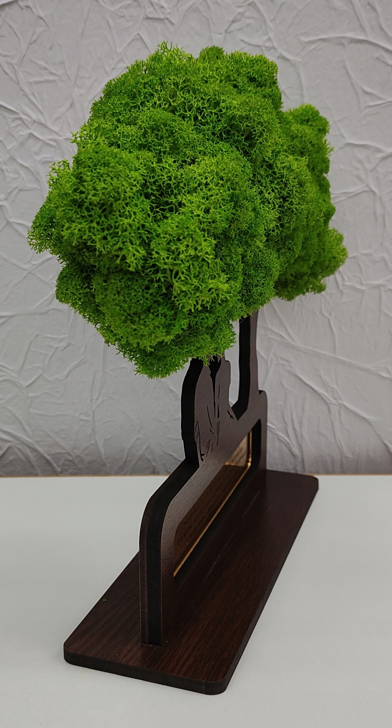 Дерево уникальное – потому что оно объемное. Он с обеих сторон покрыт мхом, что придает ему утонченность и неповторимость.