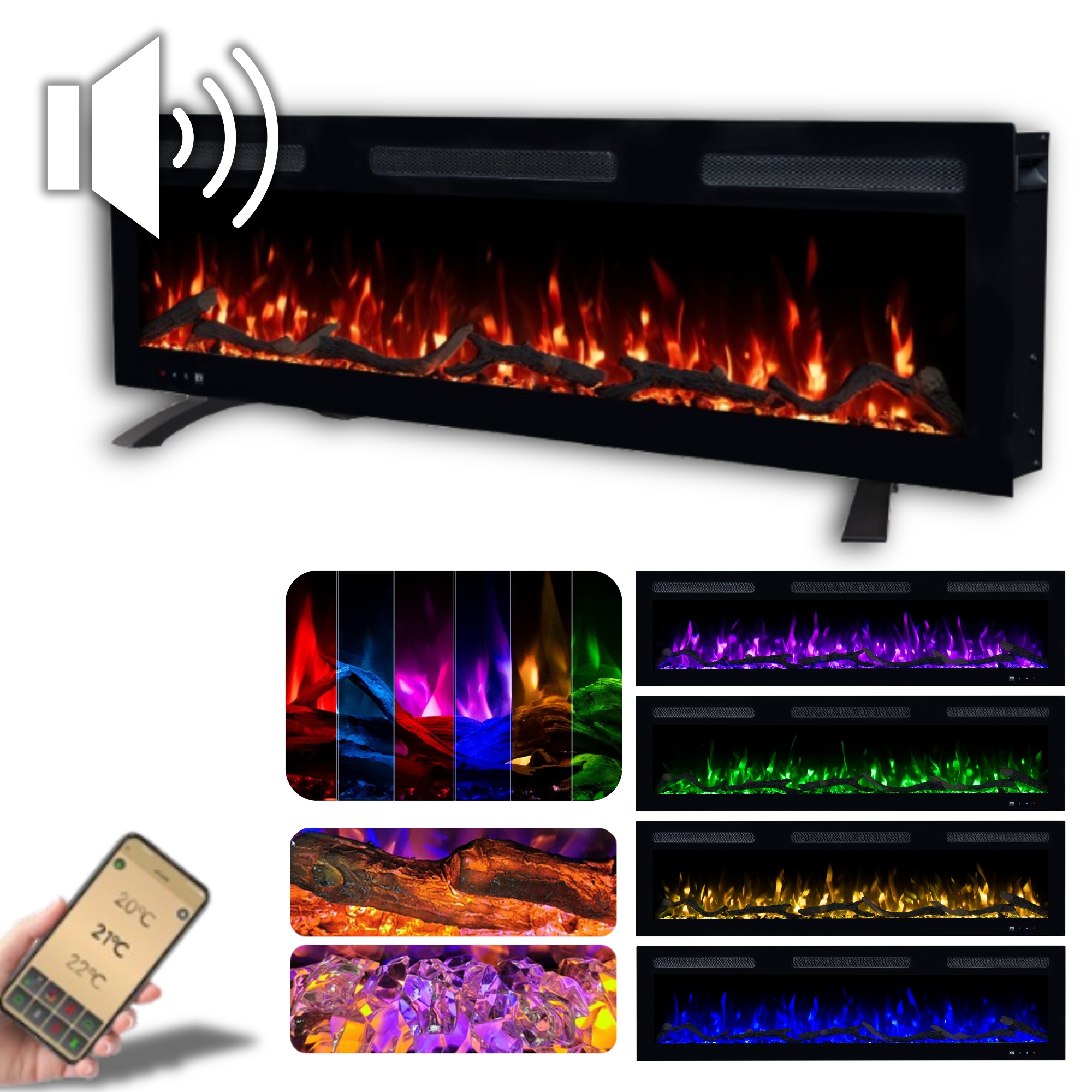 3D електричний камін MONARCH 183 см з функцією нагріву + ЗВУК + ПІДСТАВКА